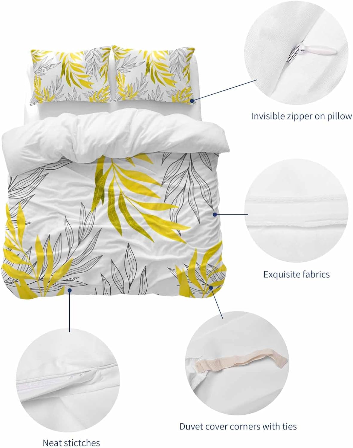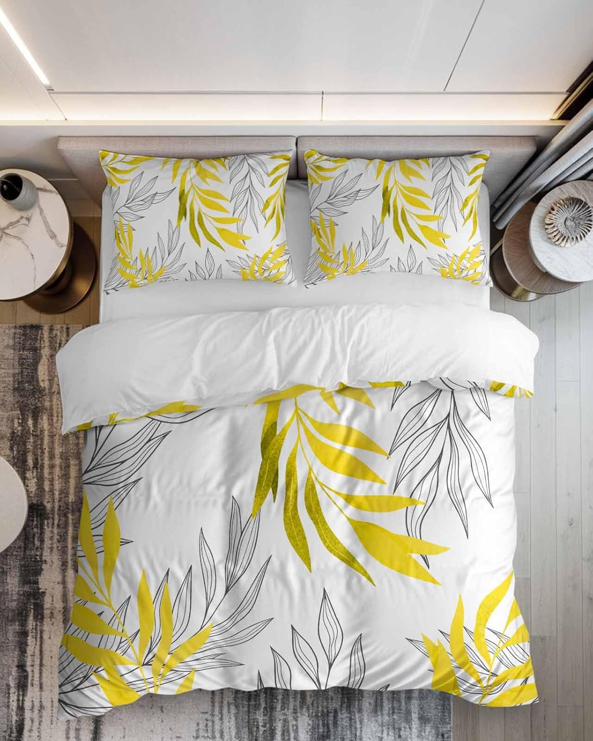 The duvet cover features a contemporary geometric design with a unique leaf pattern that adds a modern touch to your bedroom decor. Its seamless zipper closure makes it easy to remove and clean, preserving the quality and appearance of the printed design. This set is ideal for those who value both aesthetics and practicality, offering a fresh look that complements any interior.