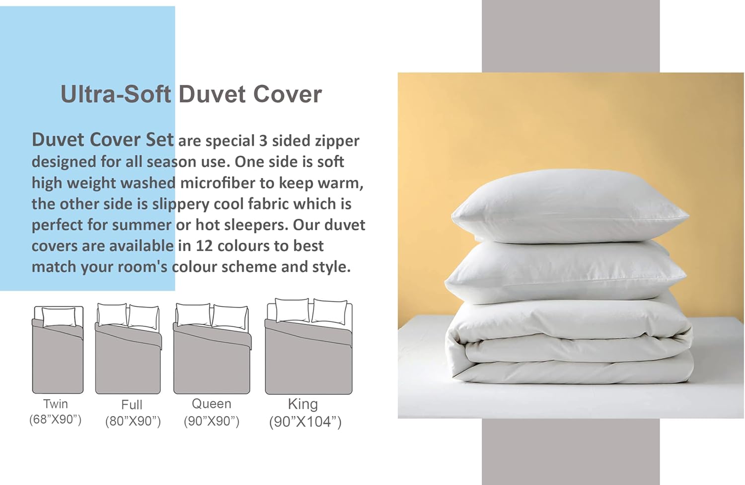 The white duvet cover adds a classic, clean appeal to your bedroom décor. Itâs the ideal choice for those who want a simple yet elegant addition to their bedding setup. Pair it with matching pillow cases to create a cohesive, stylish look that makes your space feel more inviting and refined. Whether you're seeking comfort, functionality, or a modern design, this microfiber bedding set delivers it all with seamless ease.