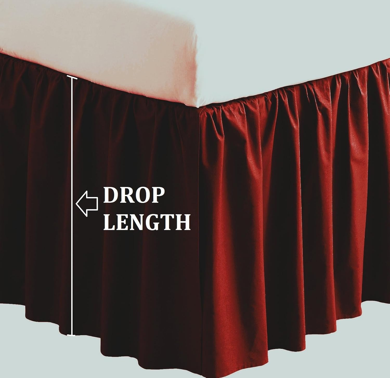 Featuring split corners, this dust ruffle is easy to install and stays securely in place, offering a snug fit under your mattress. The 9-inch drop height ensures complete coverage and a clean, polished look, perfect for both modern and traditional bedroom styles.