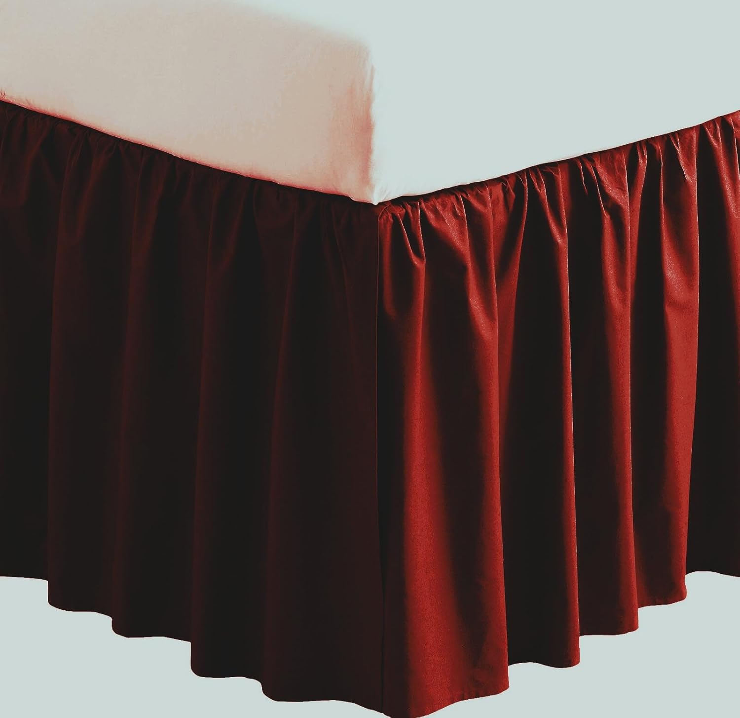 With a rich burgundy color and a blend of softness, durability, and elegance, this bed skirt is a functional piece of art that enhances your sleep experience and elevates your home's overall aesthetic.