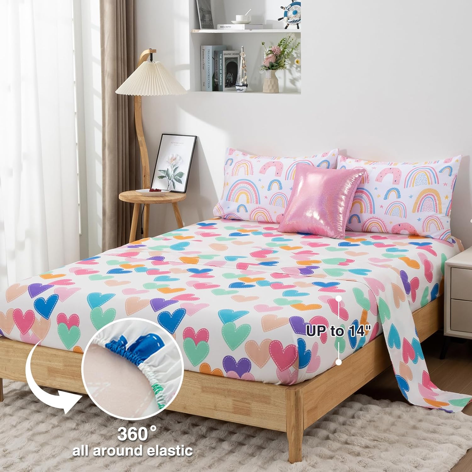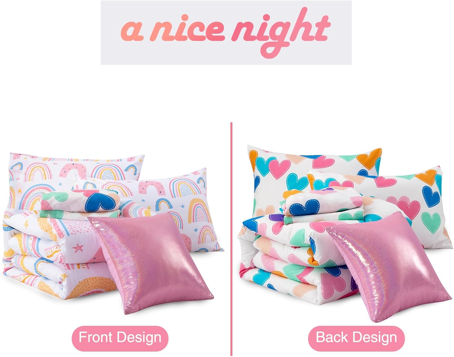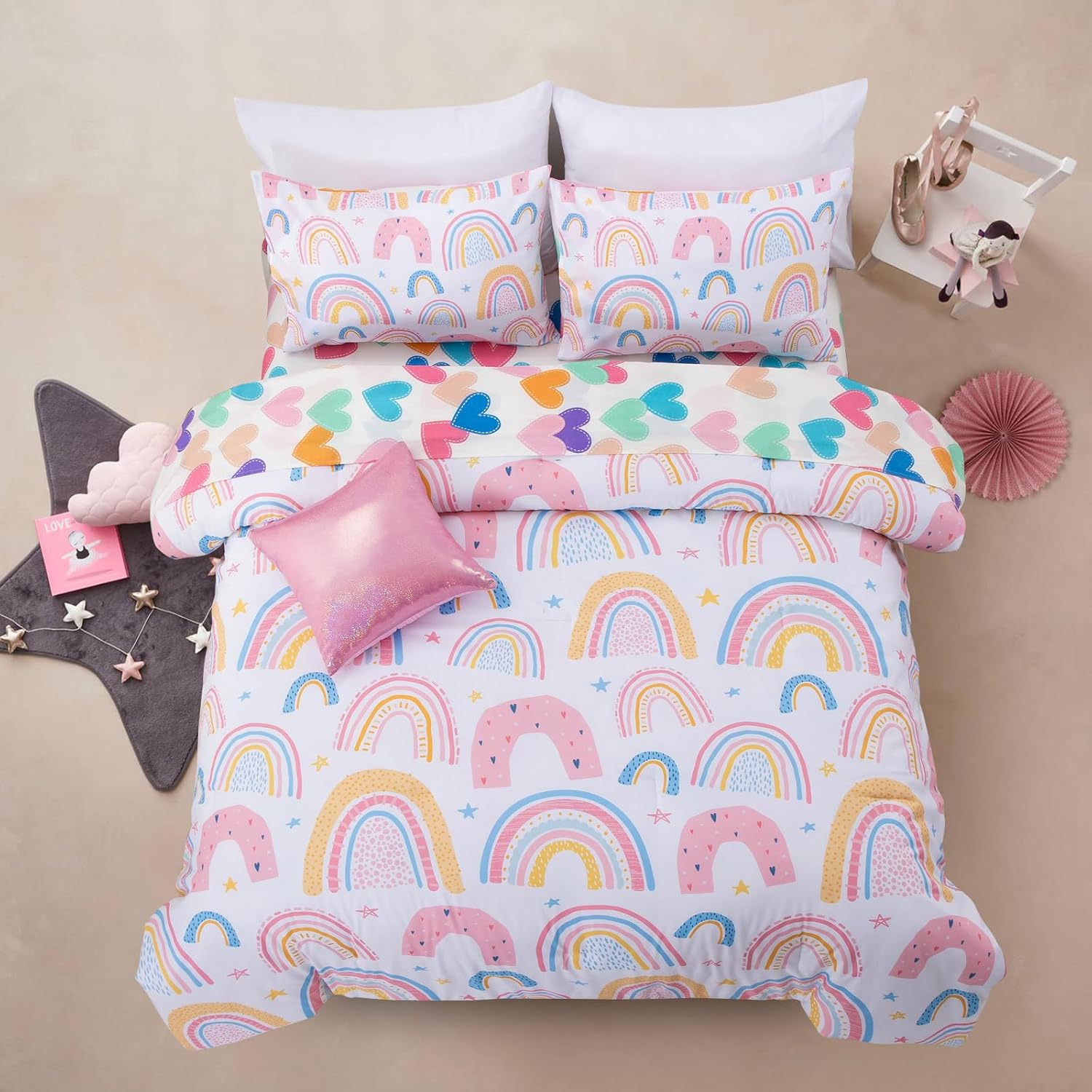 Whether you're looking for a twin size bed in a bag, soft kids bedding set, or rainbow bedding for kids, this 6-piece set delivers all in one beautiful design. It's more than just beddingâit's a delightful addition to your child's world that's built for comfort, style, and ease of use.