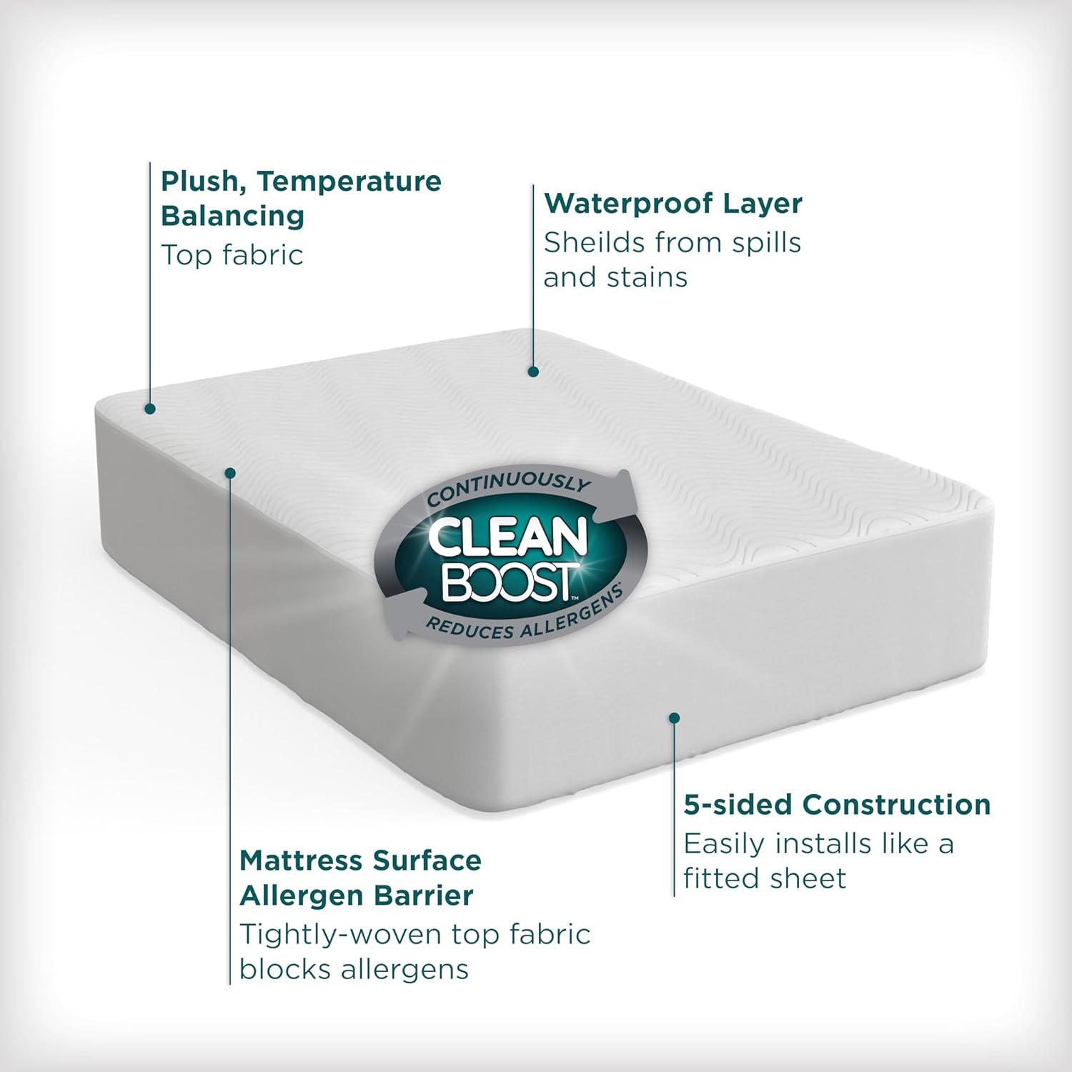 Create a cleaner, healthier sleep space with the Aller-Ease CleanBoost Plush Mattress Protector, specially designed for twin-sized beds. This innovative product combines powerful allergen removal with reliable waterproof protection, making it ideal for families with pets, children, or anyone looking for a worry-free sleep experience.