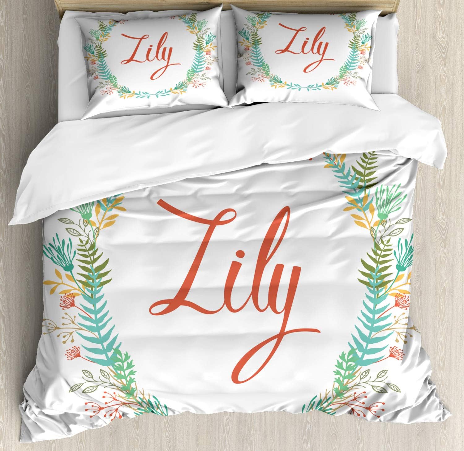 Transform your child's room into a cozy and stylish sanctuary with this beautifully designed duvet cover set. Perfect for nursery rooms, kids' bedrooms, or any area that needs a cheerful touch, it combines comfort with a vibrant wreath and foliage pattern that brings life and celebration to any space. Manufactured from 100% brushed microfiber fabric, this set offers a luxuriously soft and smooth texture that feels gentle on your child's skin. It's built to last, keeping its vibrant colors and fresh look for years of use. The eye-catching lily and foliage design is a perfect addition to any bedroom, bringing a touch of nature and celebration. It's ideal for creating a welcoming and festive atmosphere while maintaining a modern aesthetic. With a hidden zipper for hassle-free removal and envelope closures on the pillow shams, assembly and cleaning are simple and seamless. It's designed to make your life easier without compromising on quality or style. This set includes one duvet cover measuring 104" x 98" and two matching pillow shams of 36" x 20". It's also available in California King size, making it a great fit for larger beds. The lightweight and breathable fabric ensures comfort all year round, while the printed design on the front side keeps the colors bright and lively.Ambesonne Lily Duvet Cover Set