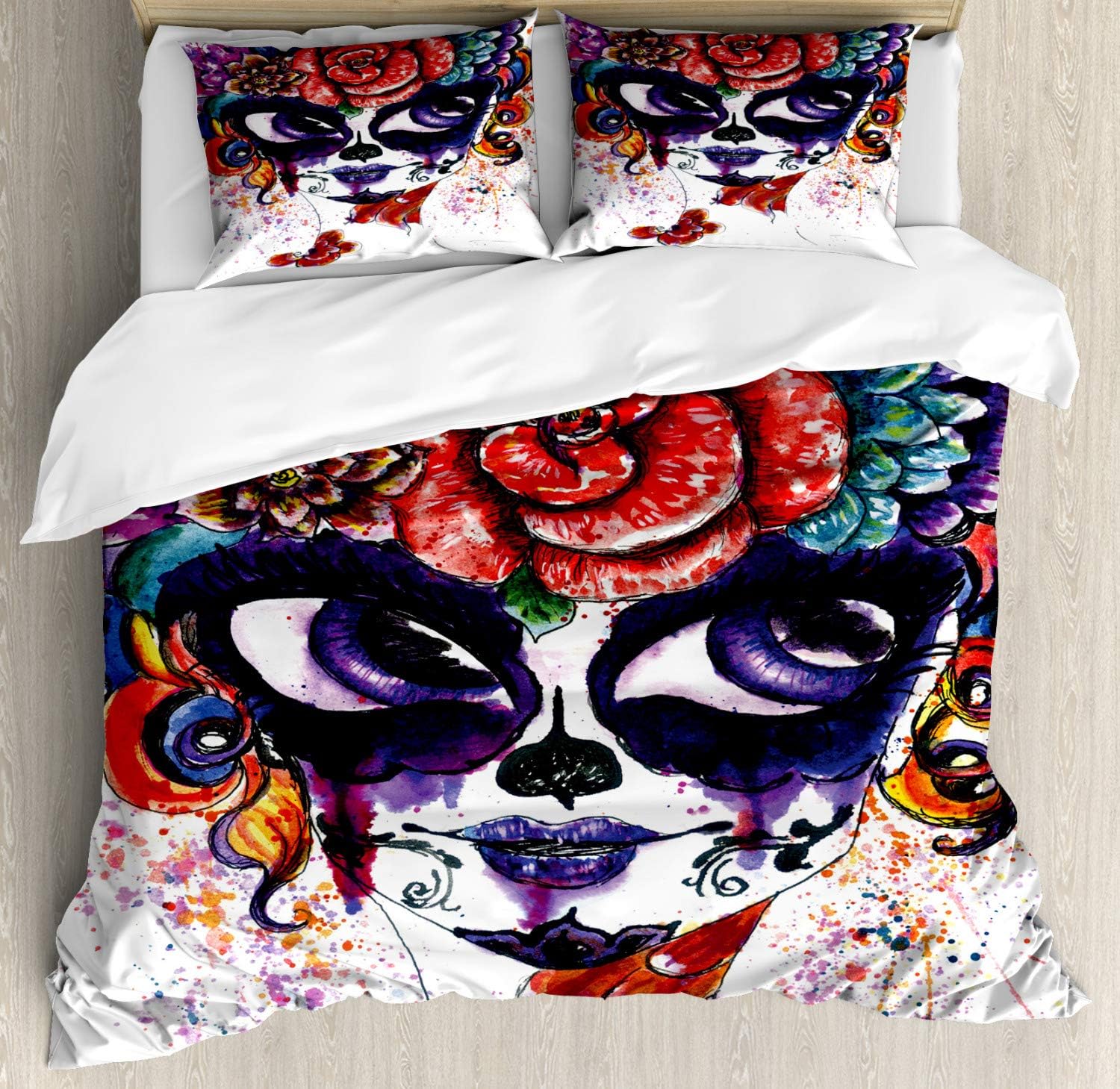 This elegant and artistic duvet cover set is designed to bring creativity and a touch of fun to any bedroom. Inspired by the vibrant sugar skull aesthetic, it features a striking watercolor illustration of a girl with charming makeup and a floral crown. This is not just a bedding setâit's a statement piece that adds personality and style to your space.