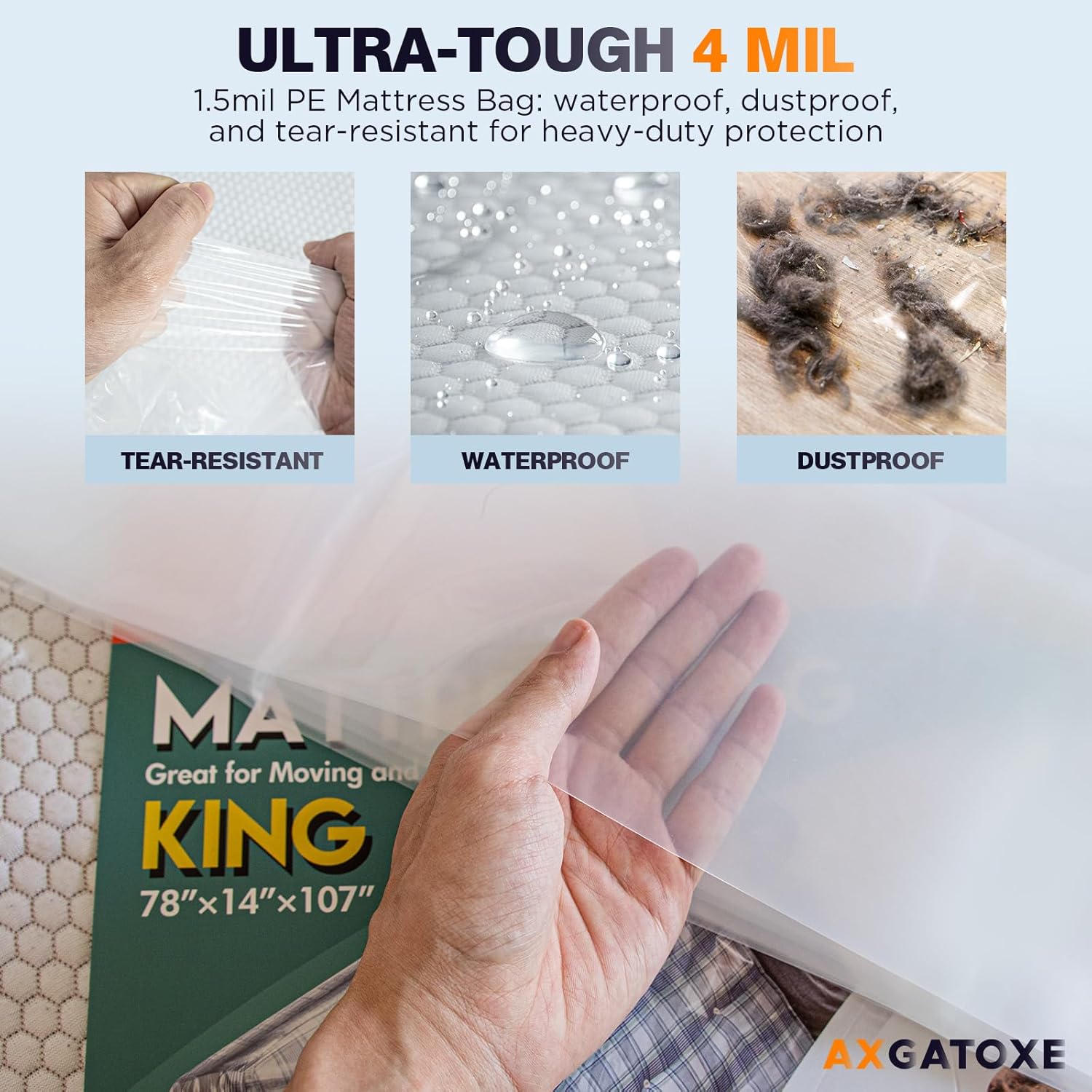 With a 30-day money-back guarantee and a 12-month warranty, Axgatoxe ensures you're fully protected against any unexpected issues. This is more than just a mattress cover â it's a reliable, sturdy, and easy-to-use solution for all your moving and storage protection needs. Plus, the versatile design makes it suitable for covering large items like chairs, sofas, and holiday decorations with equal ease.