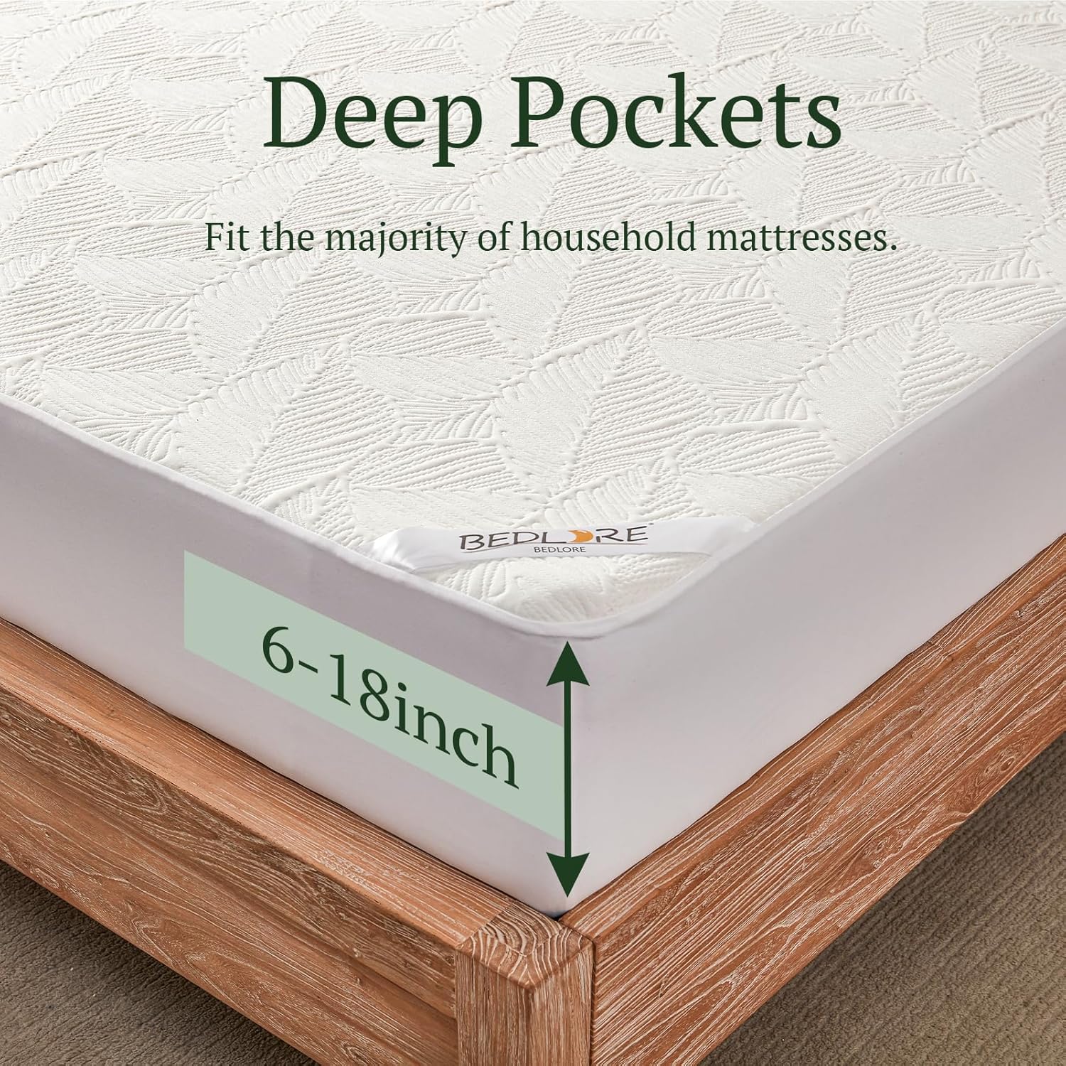 Keep your mattress safe and clean with the BEDLORE King Size Waterproof Mattress Protector. This premium protector is built with a 100% waterproof TPU base that shields your mattress from spills, stains, and moisture, ensuring long-lasting durability. The breathable polyester fabric top layer allows for airflow, keeping your sleep environment cool and comfortableâperfect for a restful night of sleep.