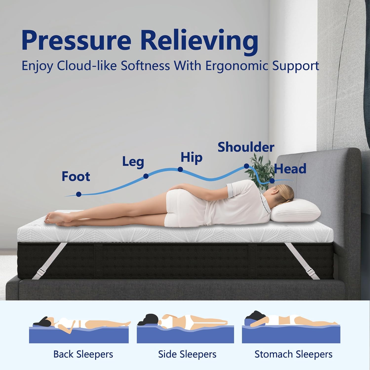 This twin-xl mattress topper is ideal for upgrading your mattress or improving your sleep quality. It's suitable for use in bedrooms, living rooms, or dorms, making it a versatile and practical choice for anyone seeking a more comfortable and restful sleep experience. Whether you're dealing with back pain or just looking to enhance your current mattress, this topper is the ideal solution.