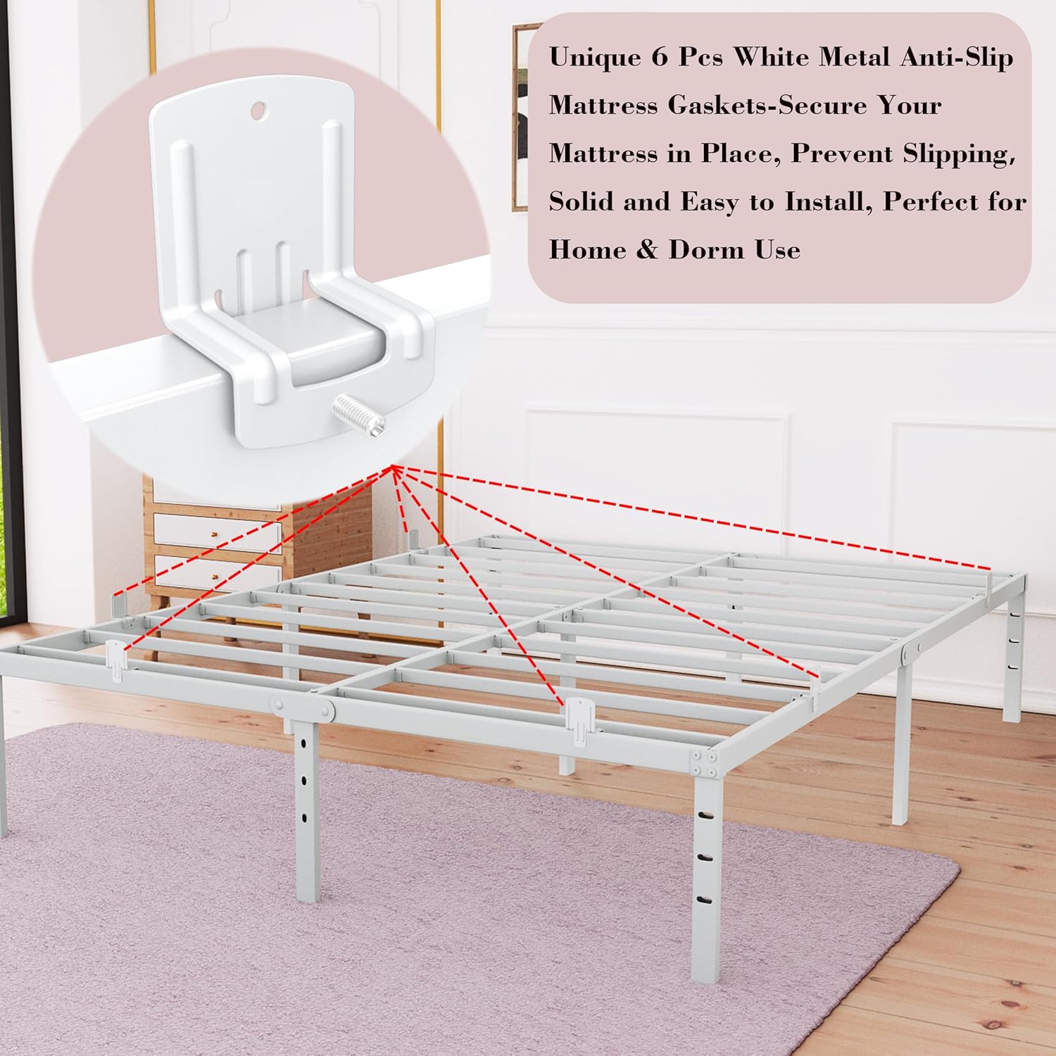 Enhance your sleep experience with these premium anti-slip gaskets designed to keep your mattress secure and stable. Crafted from high-quality metal, they offer exceptional durability and consistent support, ensuring your mattress stays in place throughout the night. Whether you're upgrading your home setup or looking for a reliable solution for dorm life, these gaskets are the perfect addition to any bedroom.