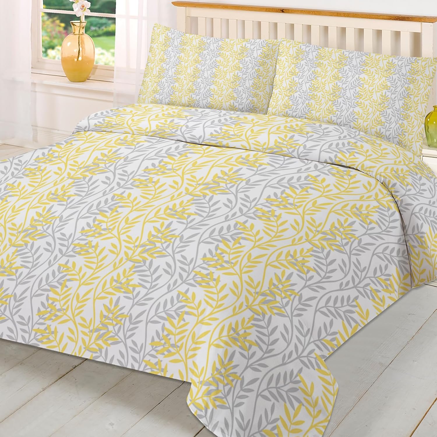 This bedding set combines elegance with functionality, making it the perfect choice for anyone seeking a peaceful and stylish sleep environment. Available in a soothing yellow grey botanical print, the duvet cover and matching pillowcases bring a fresh, pastoral vibe to your bedroom while maintaining a refined and modern look. Designed for comfort and ease, the set is ideal for families with pets or children, thanks to its durable and easy-to-clean construction.