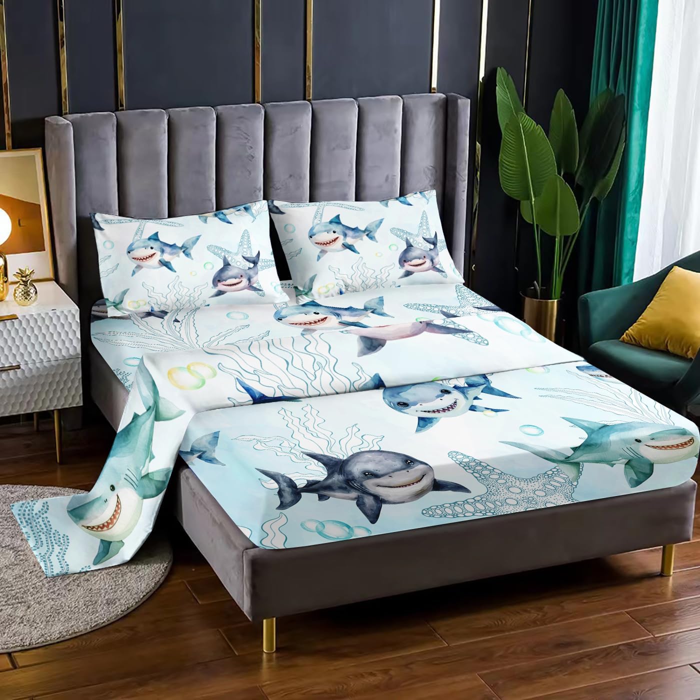 Whether you're decorating a kids' room or updating your own space, this Ocean Shark Bed Sheet Set delivers both comfort and character. Its playful design and high-quality materials make it a perfect addition to any modern bedroom, offering a fresh and fun vibe that stands out.