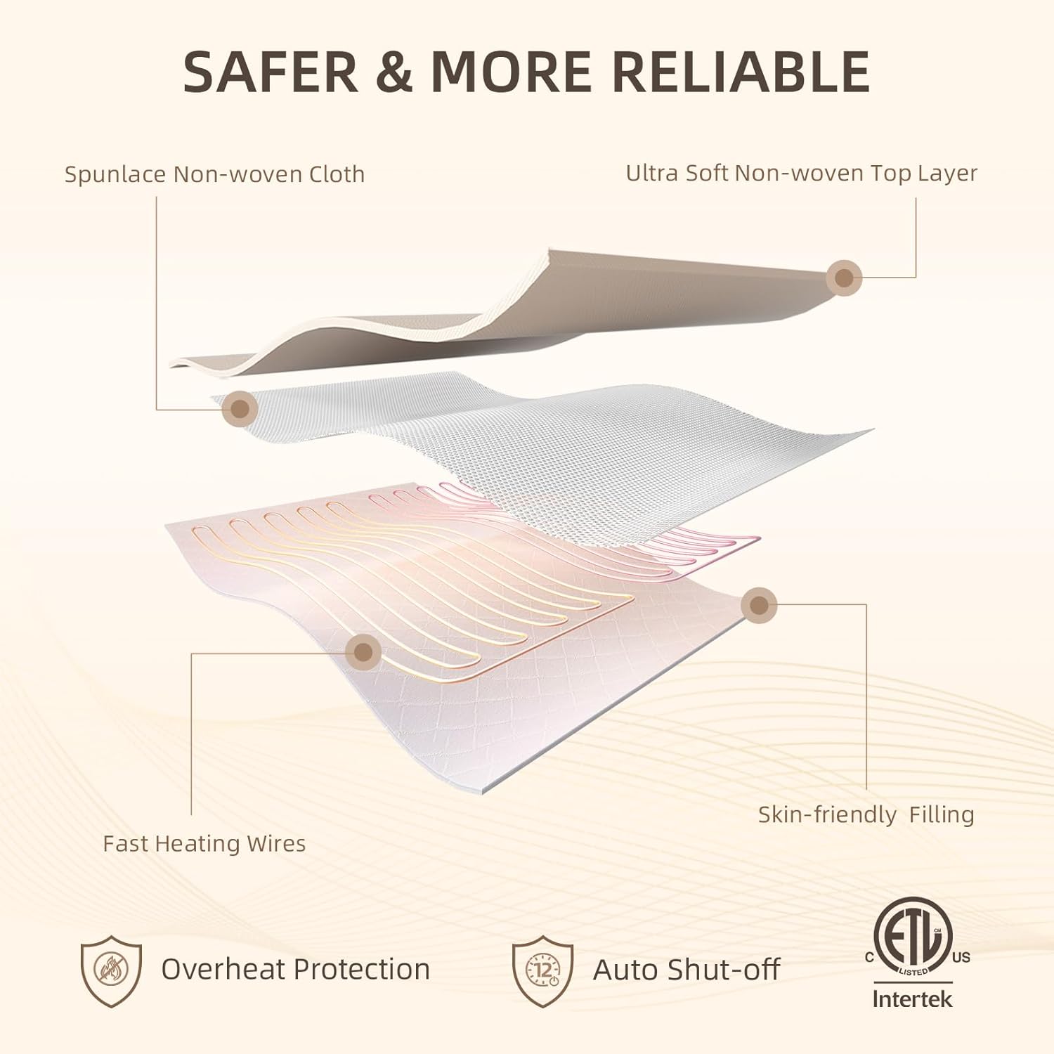 With 9 adjustable heat settings, you can customize the temperature to suit your preference and comfort level. The smart digital control system includes an auto-off timer that turns off after 1-12 hours, enhancing safety and energy efficiency. Plus, the fast heating technology delivers instant warmth, helping you fall asleep faster and stay relaxed throughout the night.