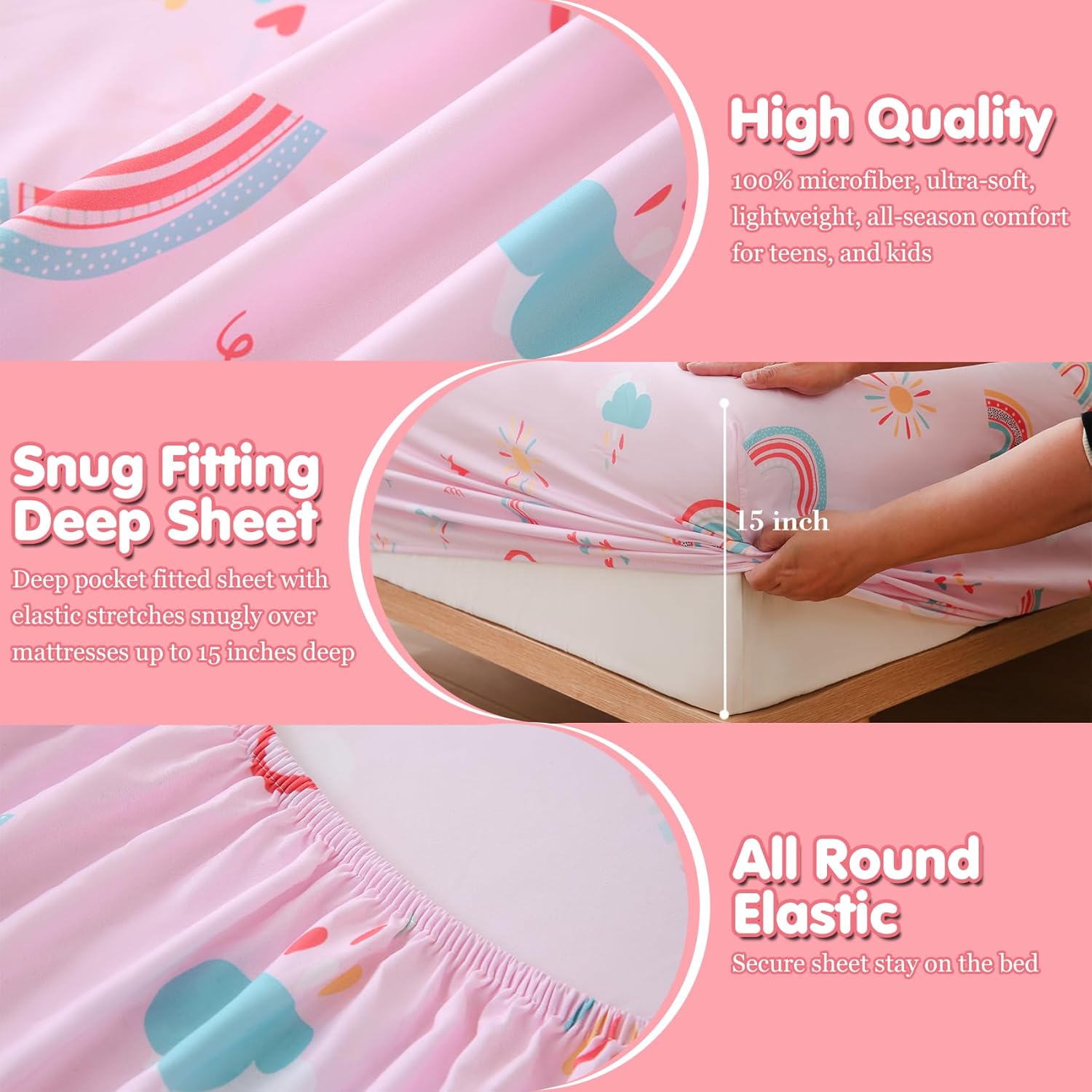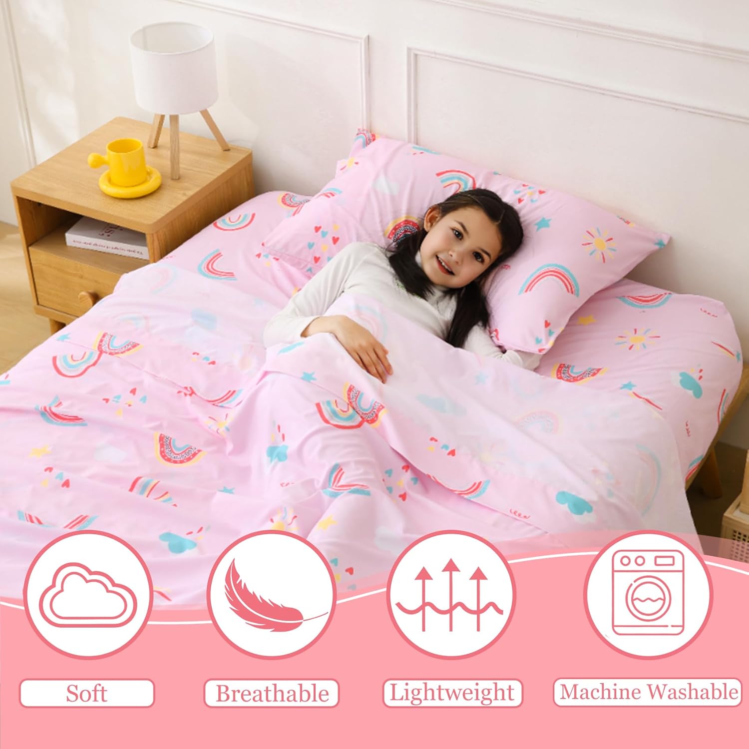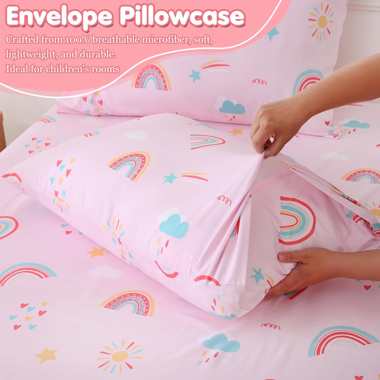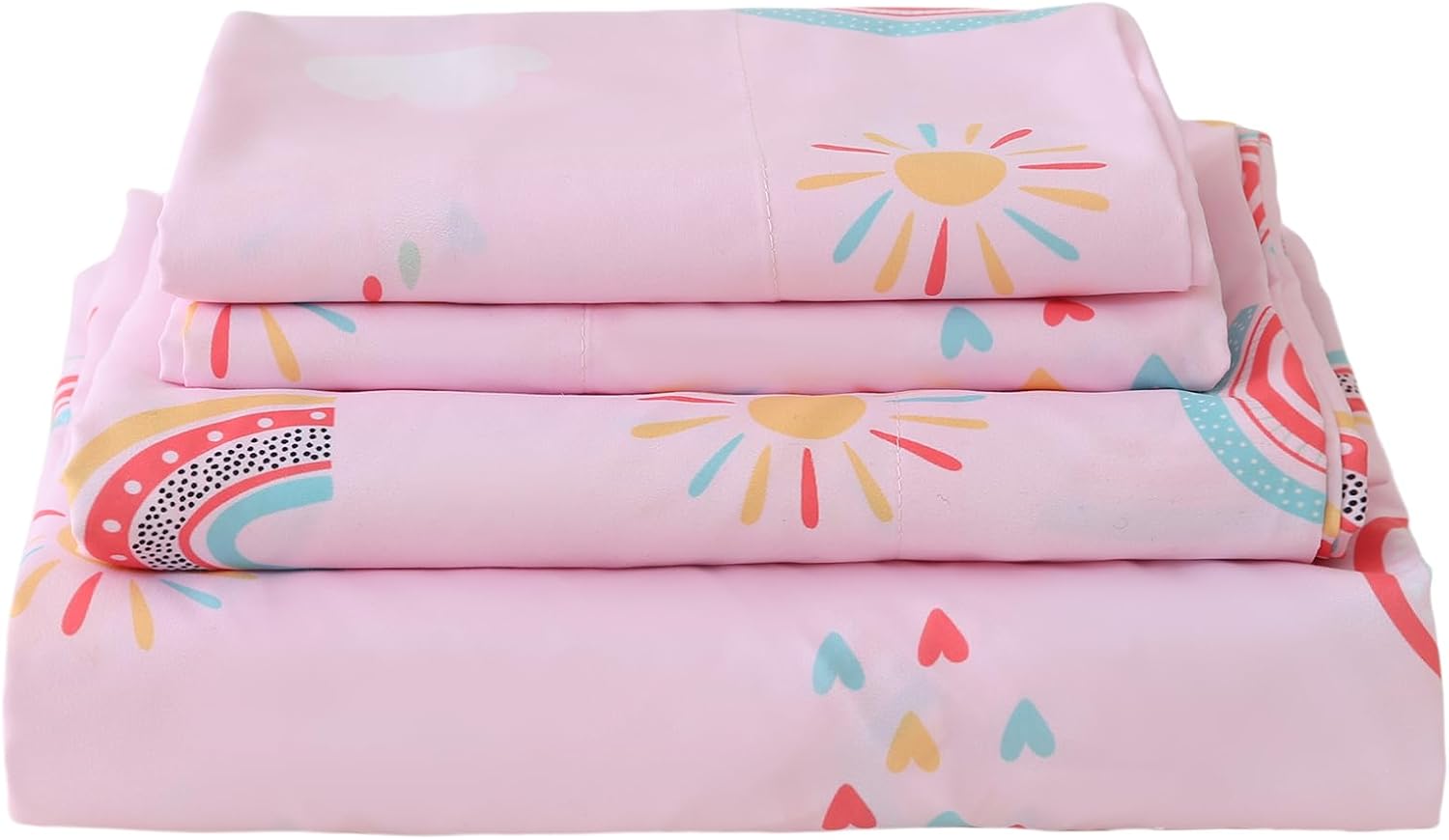 Featuring a captivating rainbow pattern, this set brings joy and color to any kidsâ room. Itâs a great way to create a fun and inviting atmosphere that sparks creativity and imagination during bedtime or playtime.
