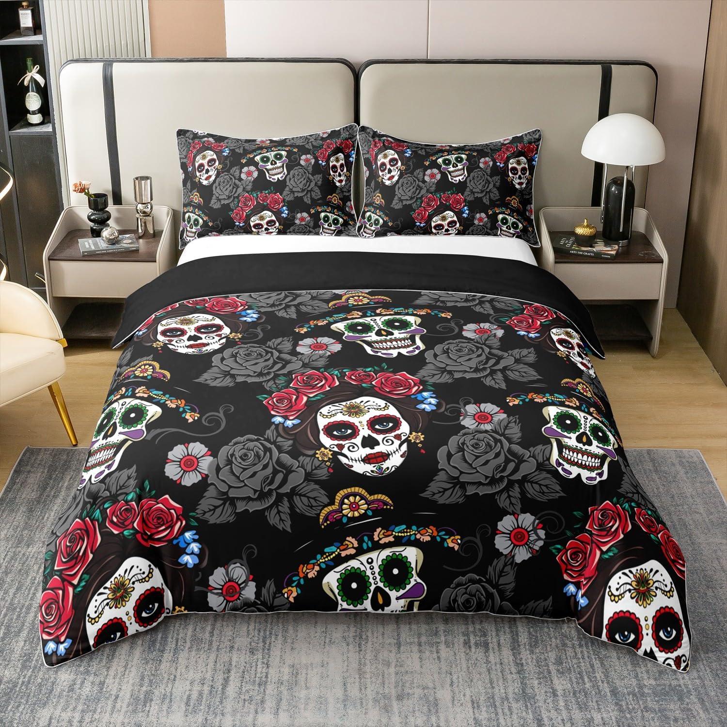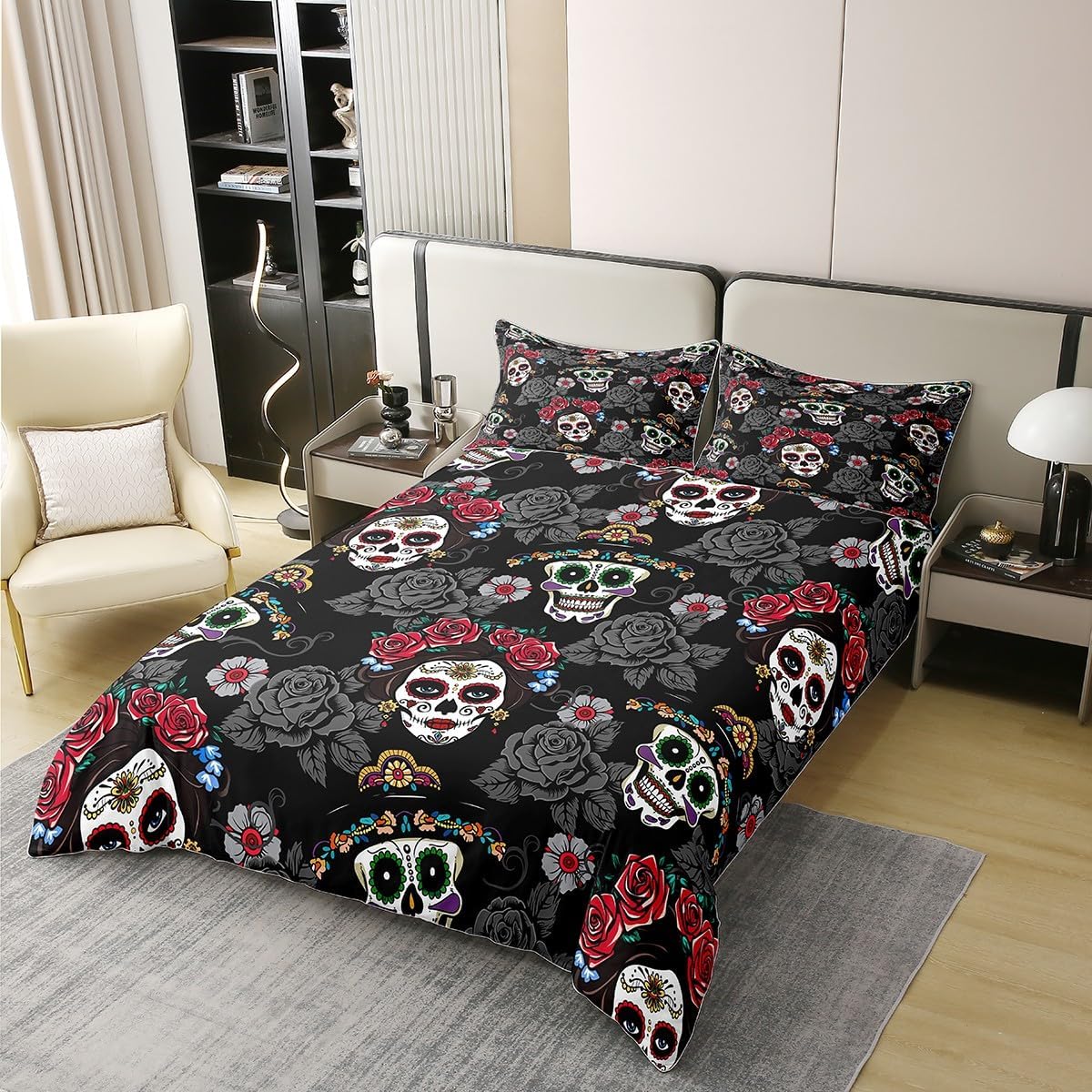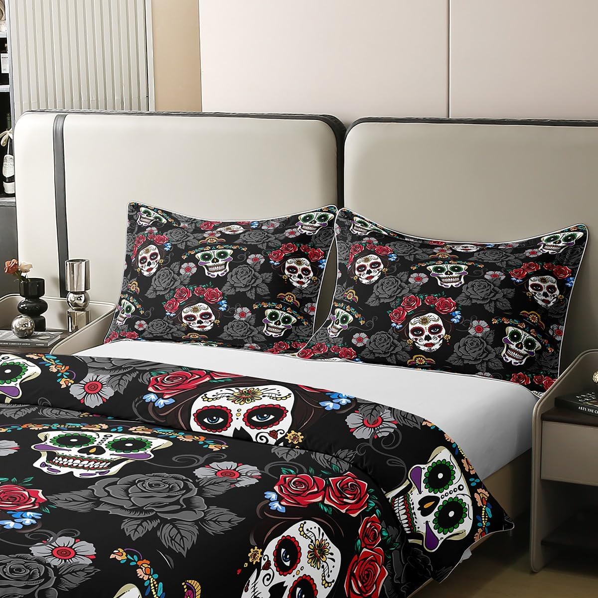 Perfect for king size duvet or even a queen size bedding, this set can be used in a bedroom, guest room, or living room. Itâs not only stylish but also durable, making it a great choice for both kids and adults who love a unique and vibrant look. Add some sugar skull pattern to your room and let your creativity shine with every nightâs rest.