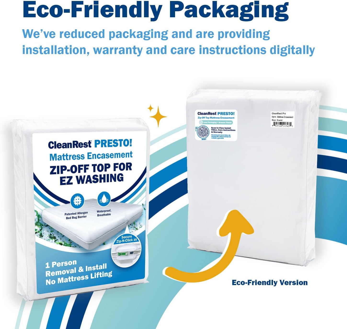 CleanRest Presto! Zip-Off Queen Mattress Encasement offers 10-year protection with hypoallergenic, waterproof, and bed bug-proof features. Durable and easy to clean, it ensures a healthier, cooler sleep experience for homes.