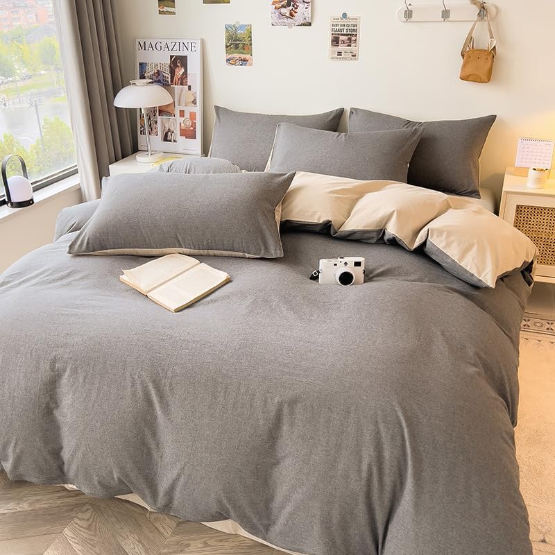 Included in the set: 1 duvet cover and 2 matching pillowcases. Ideal for a modern, minimalist bedroom with solid color tones. A perfect blend of design and practicality, this washed cotton bedding set brings comfort and elegance to your sleep space every night.