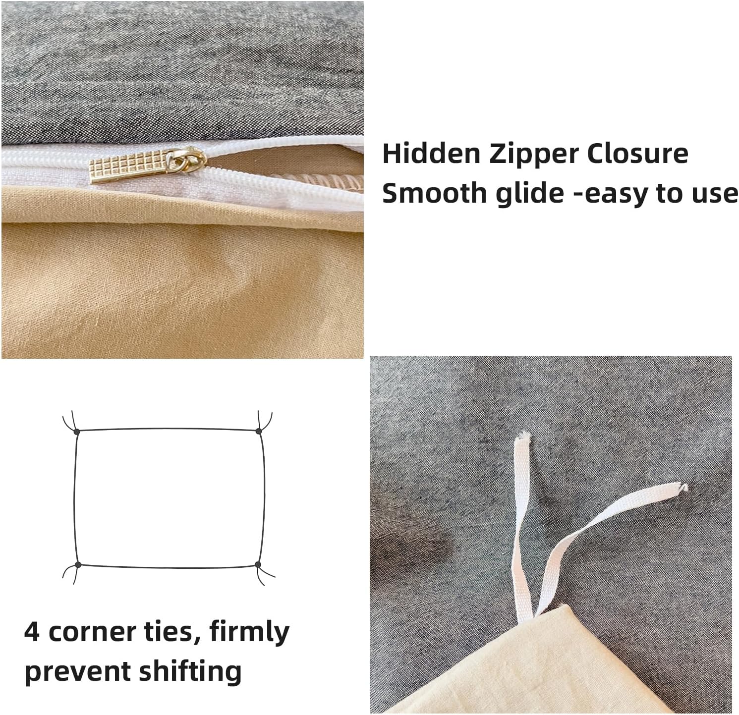 Crafted from premium 100% washed cotton, this duvet cover set delivers superior softness and breathability for a comfortable, restful nightâs sleep. Itâs designed to feel like the luxurious bedding of a 5-star hotel, while being perfect for everyday use in your home or bedroom. The hidden zipper closure ensures a secure fit without gaps, trapping your duvet insert neatly inside. Four corner straps provide extra stability, keeping the cover in place and preventing any shifting or bunching, so you wake up to a perfectly laid bed.