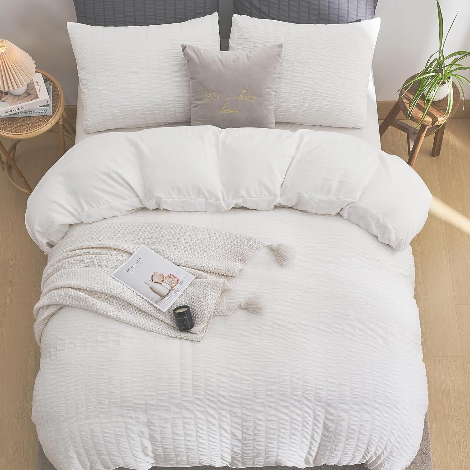 This set is designed for both everyday use and thoughtful gifting. Its combination of seersucker texture and durable fabric makes it suitable for all seasons. The zipper closure and corner ties ensure a snug fit and make maintenance simple and hassle-free.