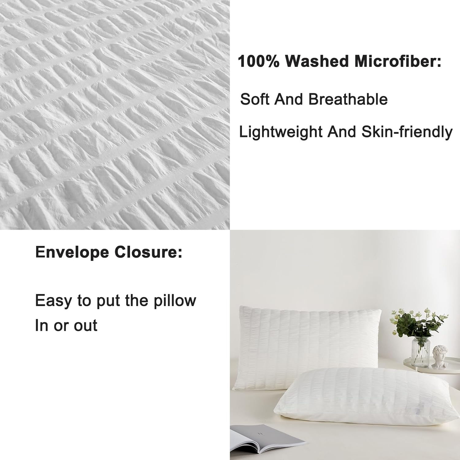 This 3-piece set blends style and comfort, making it the perfect addition to your bedroom decor. Featuring a refined seersucker pattern, it adds a touch of sophistication to your space while maintaining a cool and breathable feel all year round.