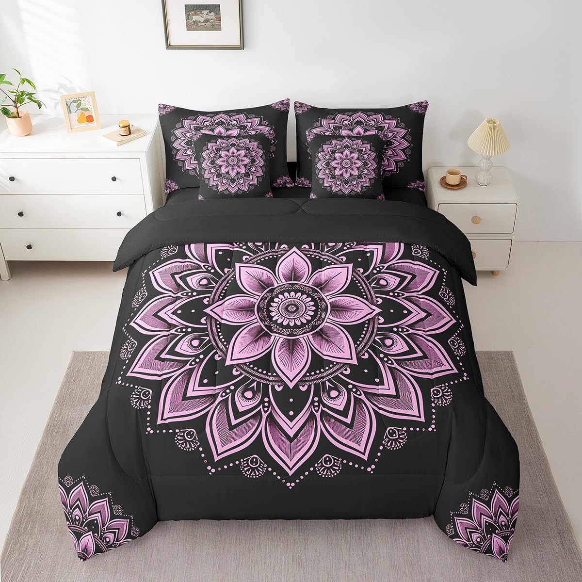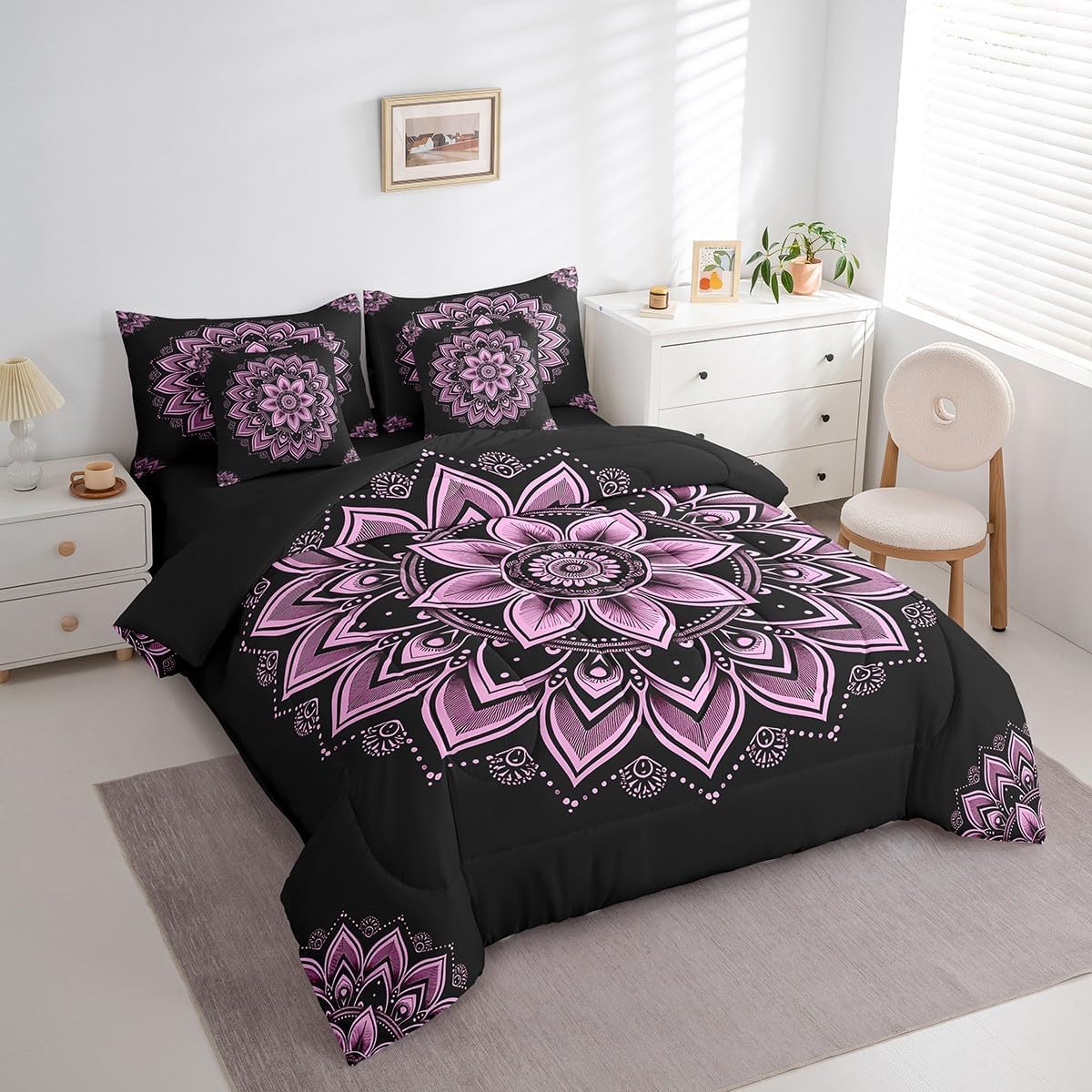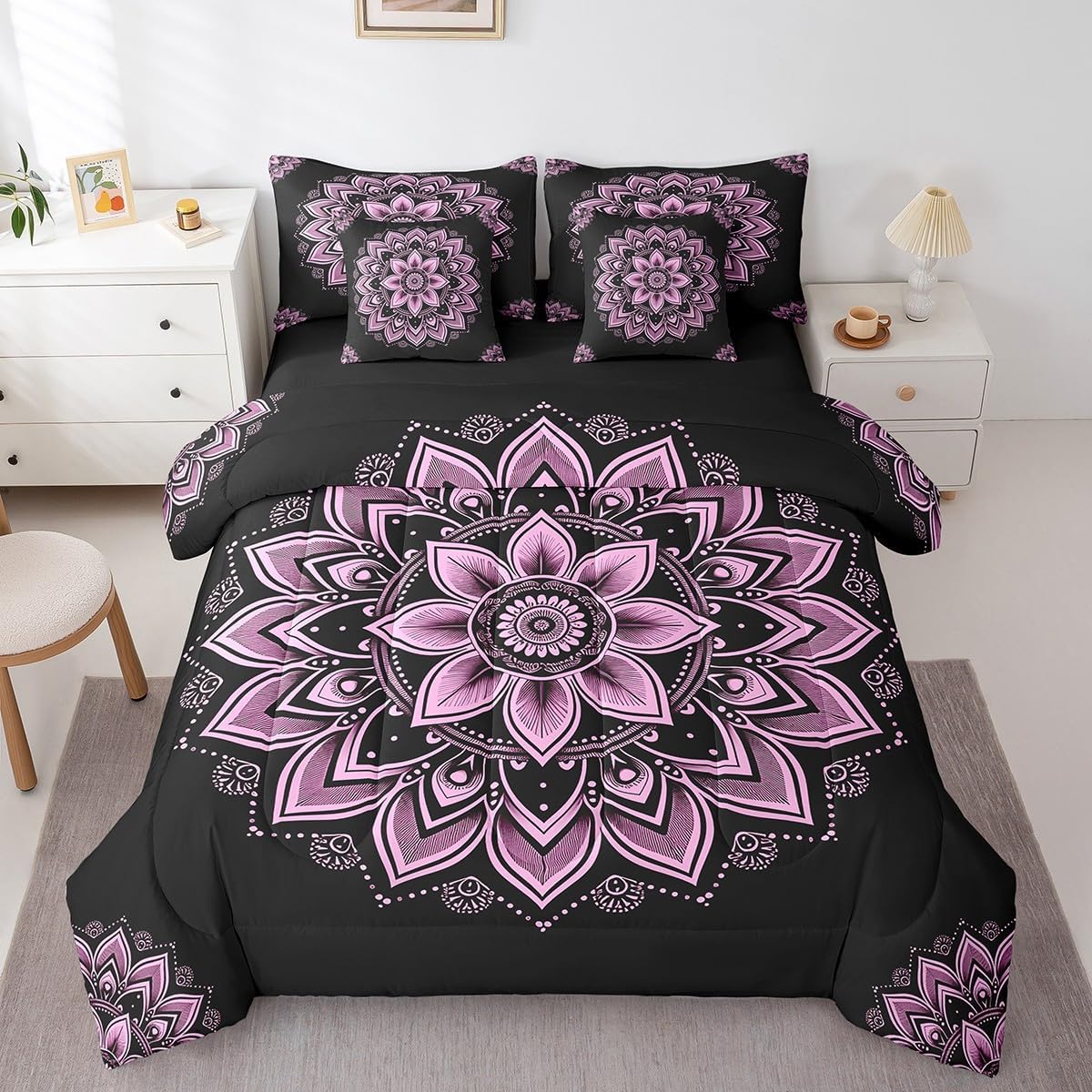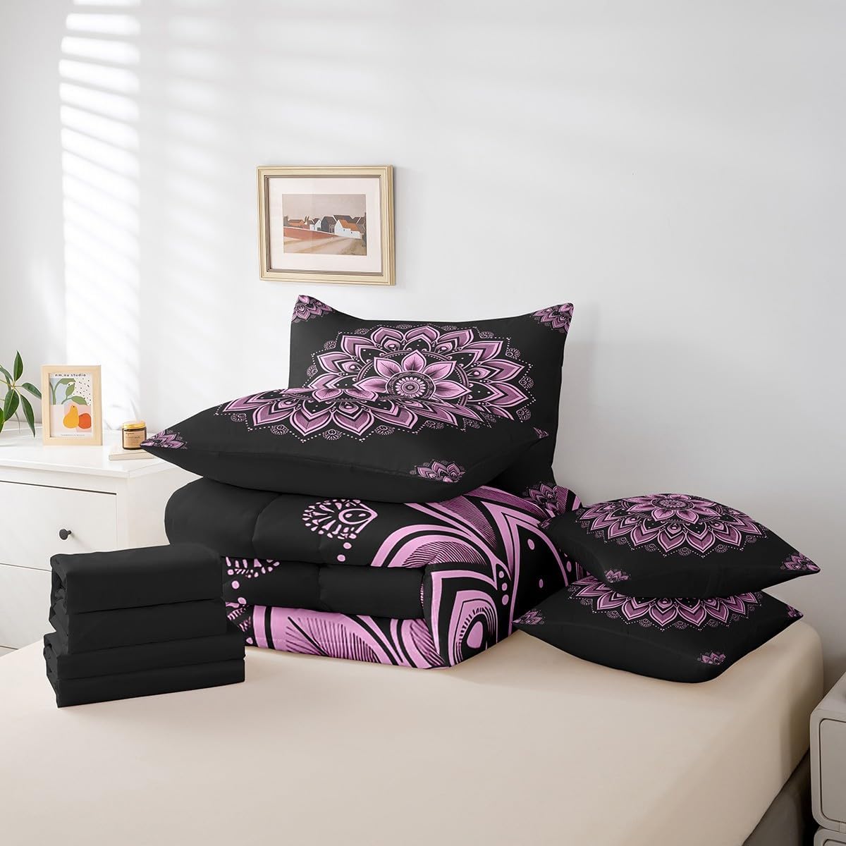 Erosebridal's 7-piece comforter set brings together style and comfort in perfect harmony. With its vibrant mandala floral pattern, this bed in a bag is a wonderful addition to any bedroom decor, adding a touch of artistic beauty and calming energy to your space.