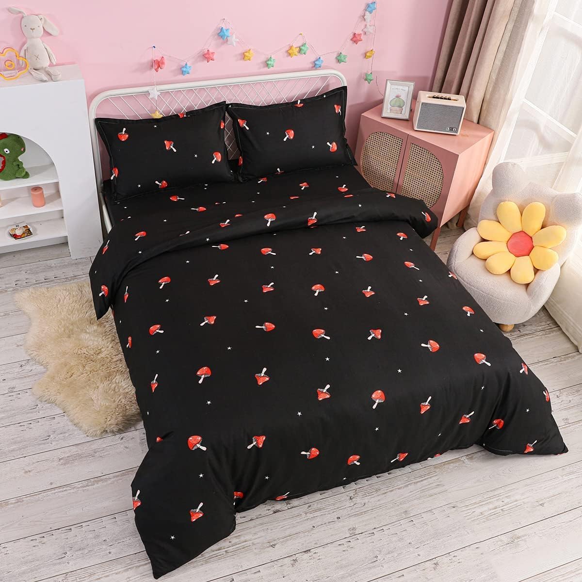 Designed with both parents and children in mind, this kawaii bedspread cover is perfect for adding a touch of brightness and charm to your space. Its machine-washable construction and low tumble dry care make maintenance simple, so you can enjoy a fresh and clean look with minimal effort. Whether you're updating your bedroom or adding color to your living space, this Mushroom Duvet Cover Set is sure to impress.