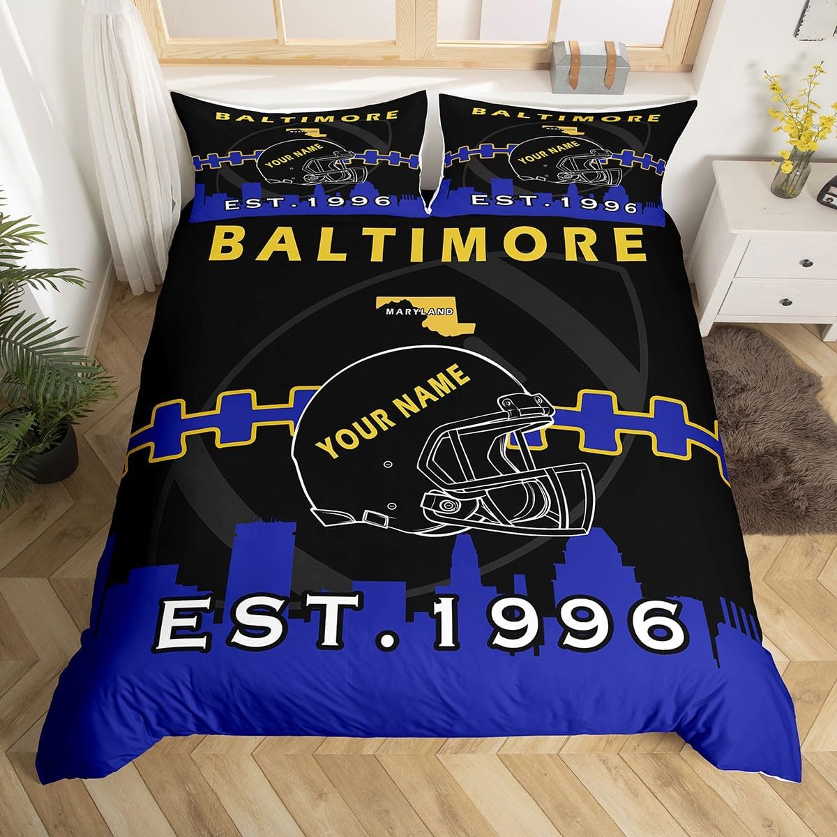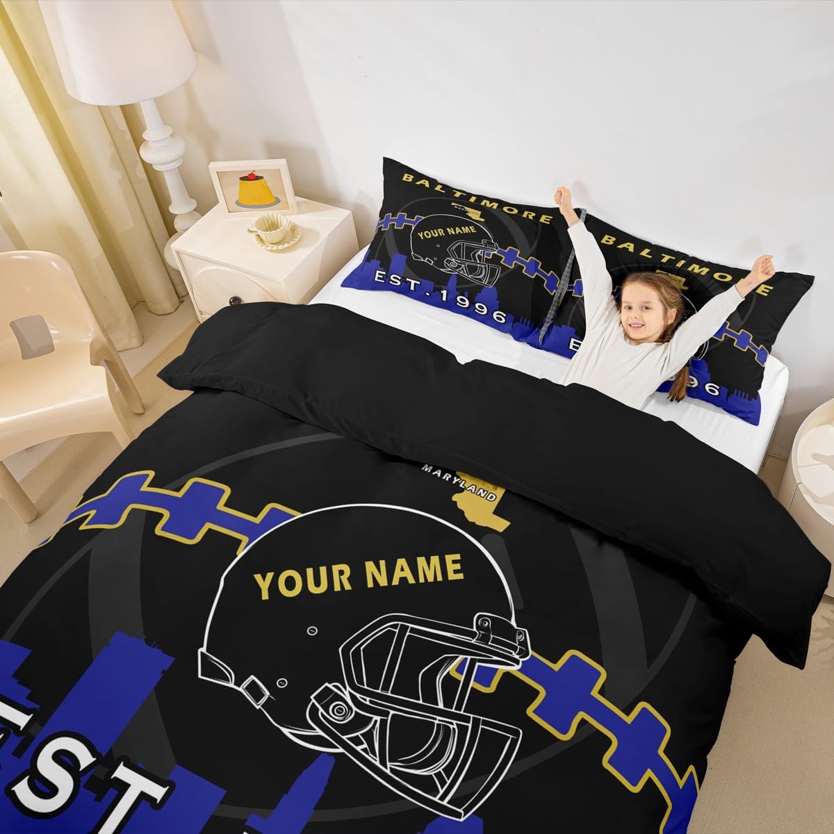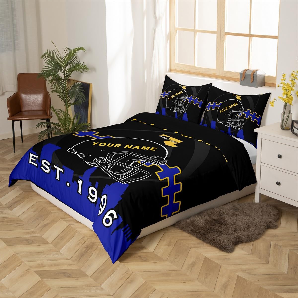 Whether your child is a fan of football or just loves the sports vibe, this customized bedding set is a great way to celebrate their interests. The team color designs accentuate the sporty theme, making it a standout addition to any kidâs room. Plus, it comes in a full size of 79" x 90", ensuring a perfect fit for your bed.