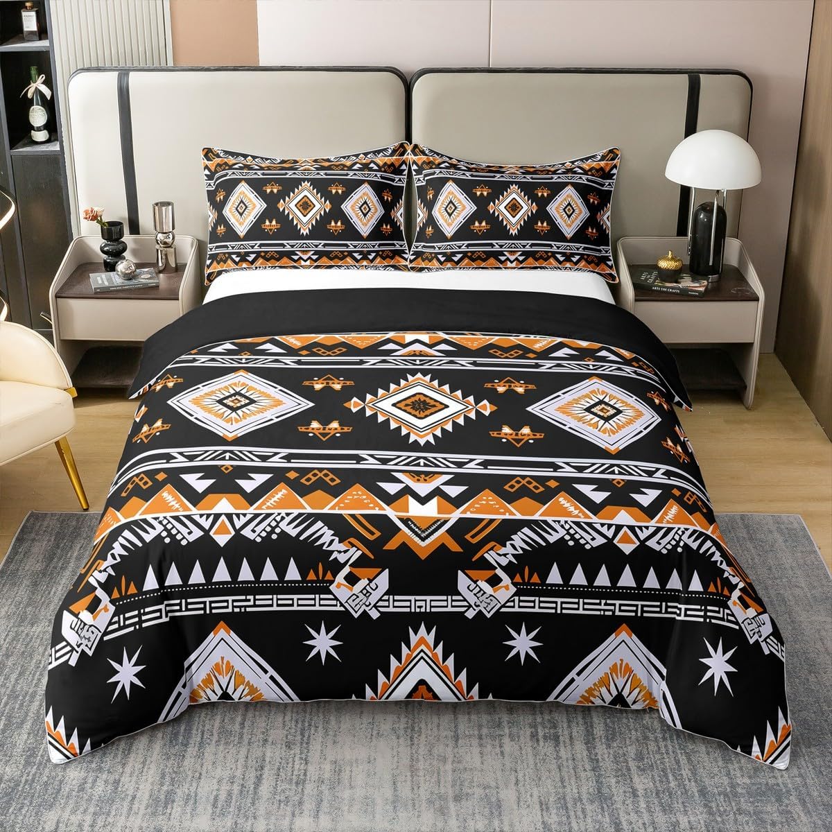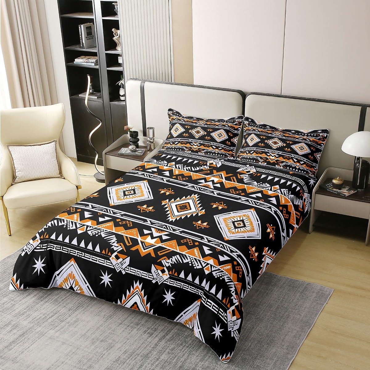 Inspired by the rich heritage of Southwest and tribal design, this duvet cover set brings a unique and exotic flair to any space. Featuring bold geometric patterns, it adds a touch of bohemian charm while remaining functional and durable. Ideal for kids, teens, or adults, it's a versatile choice for adding character to your home, whether for a festival, holiday, or just to refresh your decor.