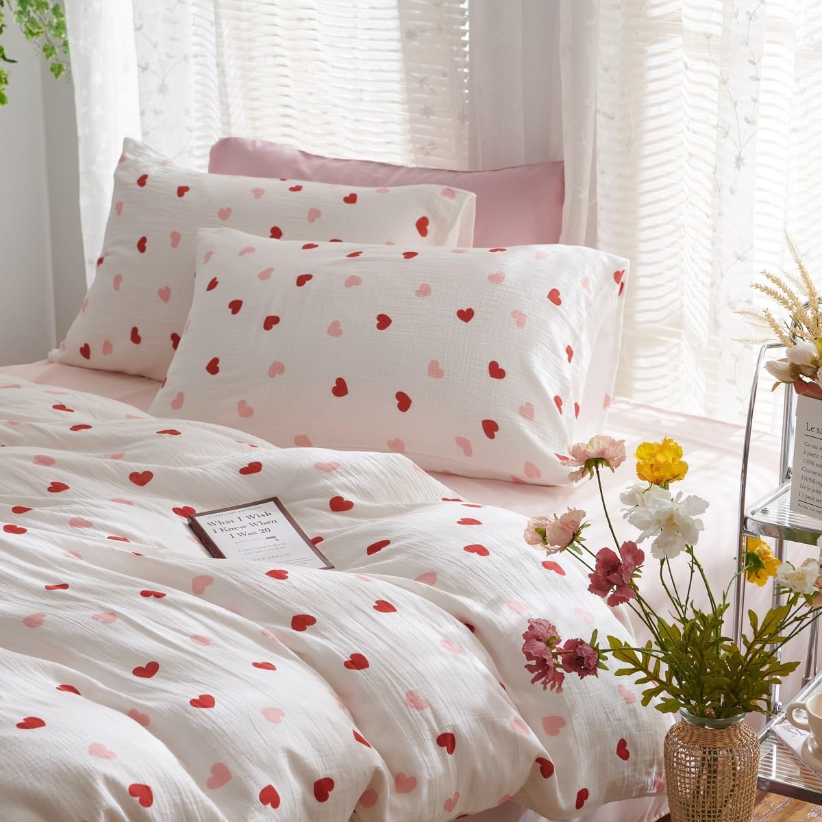 This Erwinmu girls king comforter set is designed to bring a touch of dreamy charm to your child's bedroom. Featuring a cute heart pattern in shades of pink and red, it adds a playful and sweet ambiance that complements any room decor. Whether your little one is curling up for a nap or sleeping soundly at night, this bedding set provides a warm and inviting atmosphere for rest.