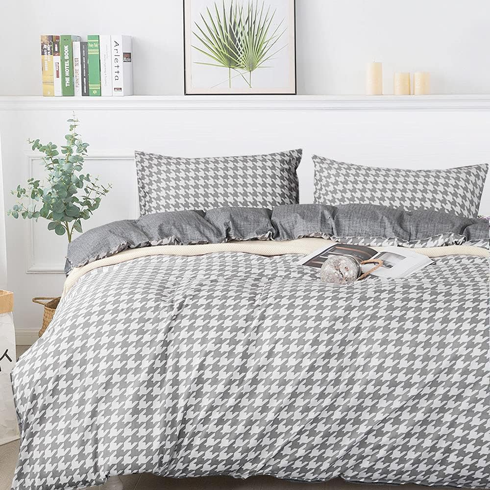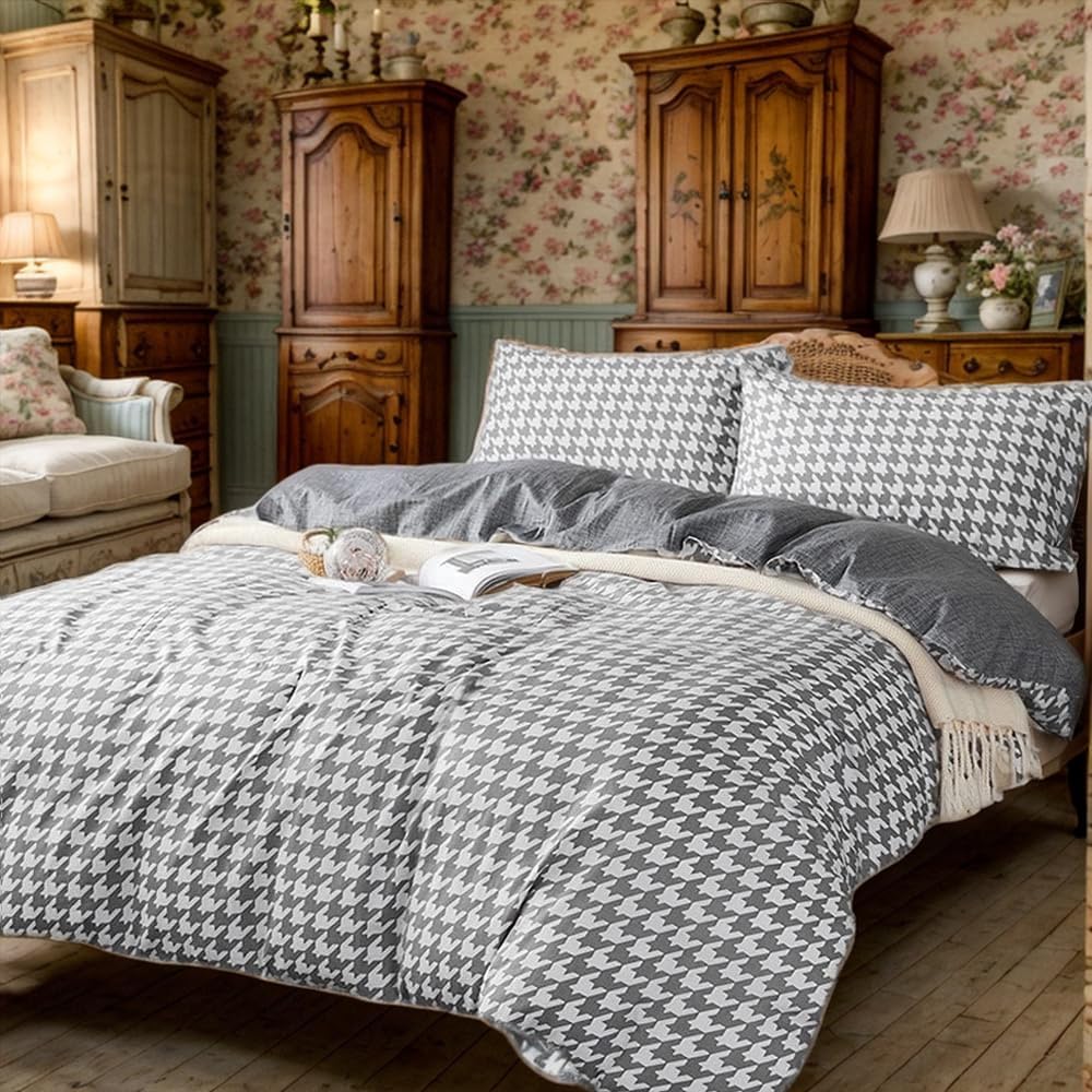 The houndstooth pattern adds a touch of timeless elegance, while the grid design offers a fresh, modern look. This durable and aesthetically pleasing set is not just a bedding upgrade, but a lifestyle statement. It's designed to adapt to your changing seasons and evolving decor, so your bedroom stays cozy and chic year-round.