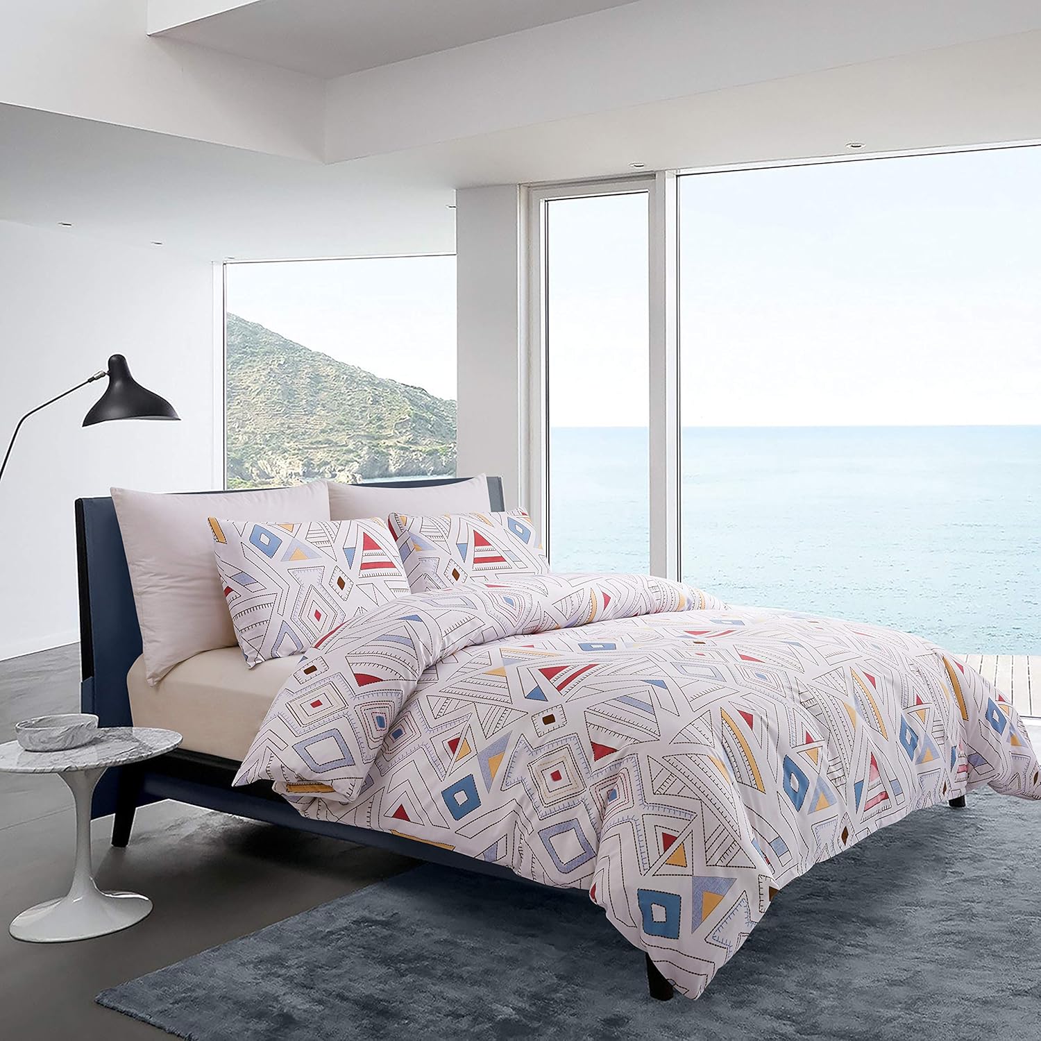Transform your bedroom with the GETIANN Duvet Cover Set Twin, where comfort and style meet. Designed with a soft, breathable fabric, this set offers the perfect balance for a cozy and restful night's sleep. The modern geometric pattern adds a fresh, contemporary look that blends well with any decor, making it an ideal choice for both homes and hotel spaces. Each set includes one duvet cover and one matching pillow sham, ensuring a cohesive and elegant setup. The secure zipper closure and hidden corner ties help keep the duvet in place, eliminating the need for tucking and promoting a relaxed, uninterrupted sleep experience. Easy to maintain, this set is machine-washable and can be tumble-dried on low to preserve its quality and softness.GETIANN Duvet Cover Set Twin