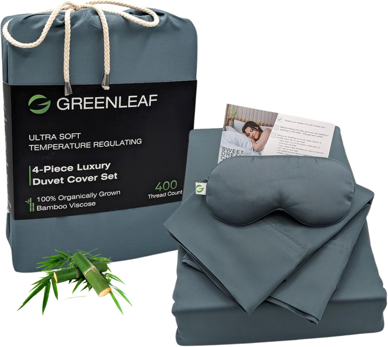 Create a serene and inviting bedroom atmosphere with our premium GREENLEAF 4-piece King size duvet cover set. This elegant bedding set is crafted from ultra-soft 100% bamboo viscose fabric, offering a luxurious feel that is both comfortable and durable.