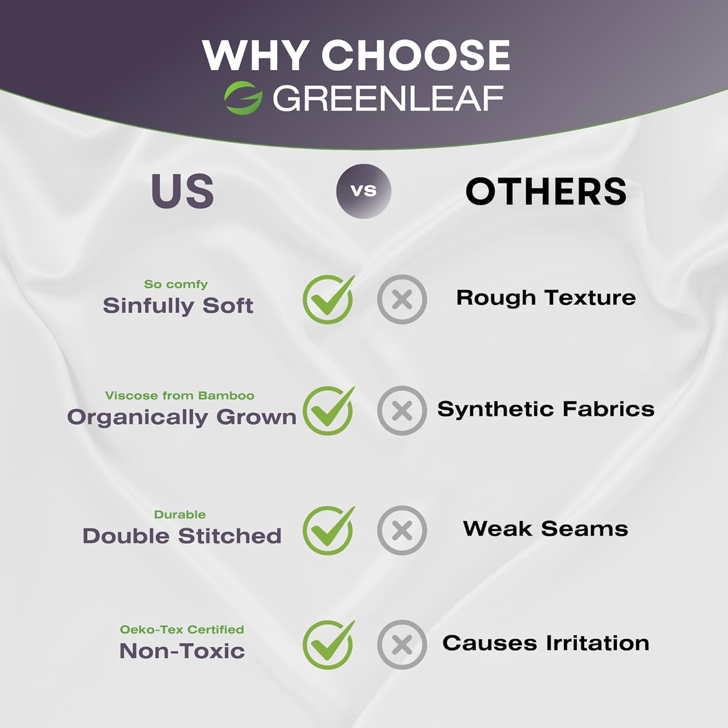 With 8 corner or side ties, the GREENLEAF set ensures a secure fit on King and California King beds, preventing shifting or wrinkling for a smooth and uninterrupted sleep. The fabric is moisture-wicking and breathable, keeping your bedding dry and refreshed all night long. Plus, the double stitching provides extra durability, making it long-lasting and easy to maintain.