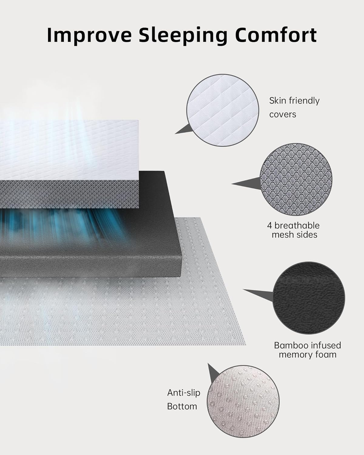 The breathable bamboo fiber cover keeps your mattress cooler and more comfortable throughout the night, while also being easy to clean with a simple zip-off design. This makes it ideal for frequent washers or those wanting to maintain a fresh, clean sleeping environment. Plus, the non-slip straps and silicon beads ensure the topper stays in place, so you don't have to worry about it shifting during your sleep.