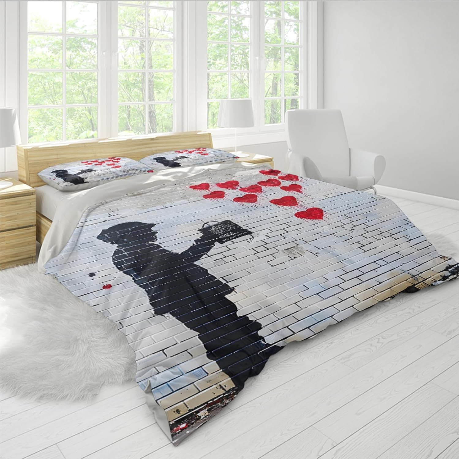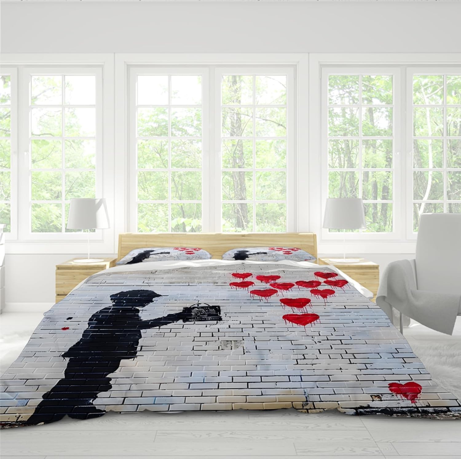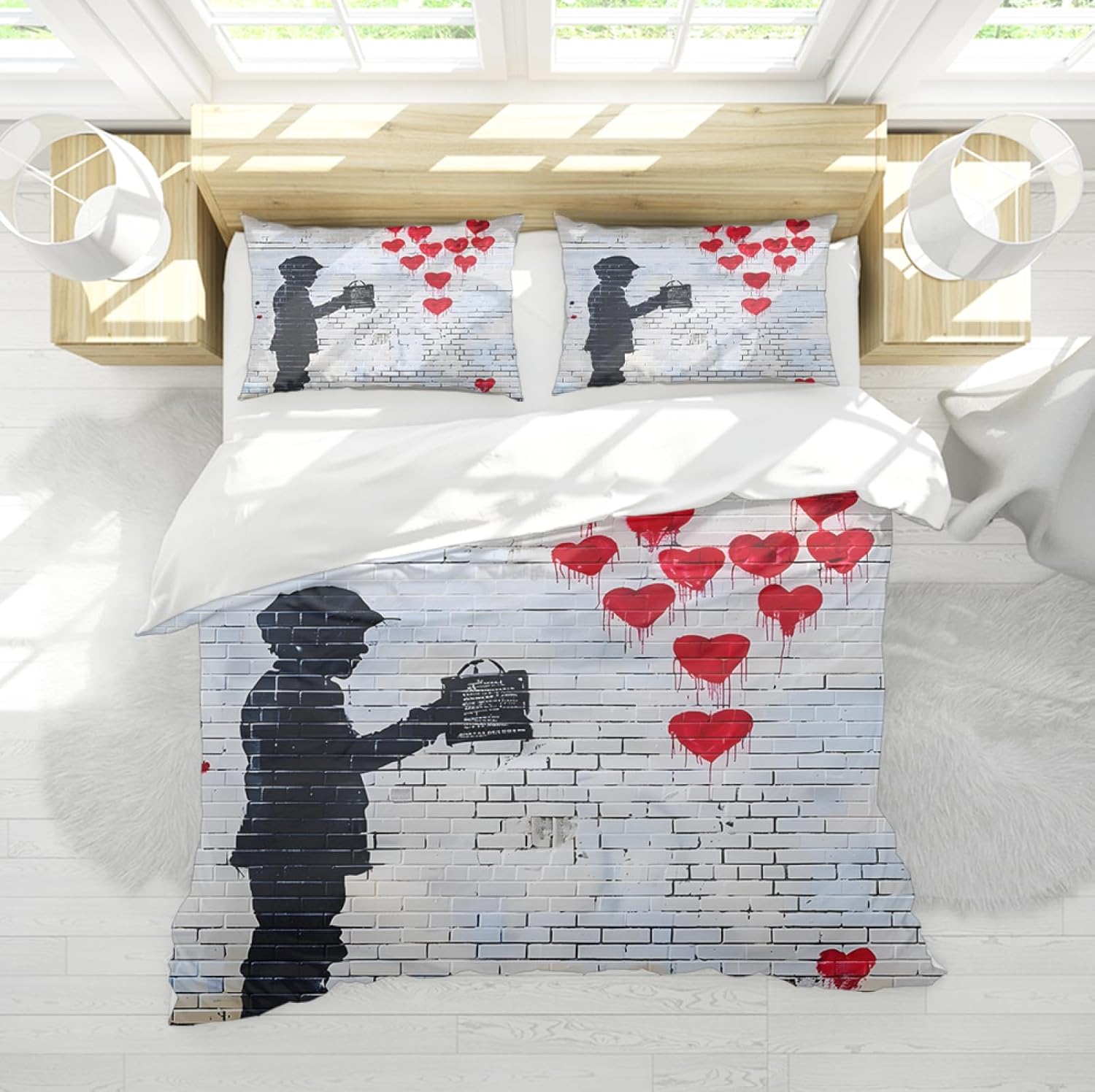Enhance your child's bedroom with this vibrant and playful duvet cover set. Featuring a bold red love pattern, it adds a modern art feel to any room, making it the perfect addition for a cheerful and creative space.