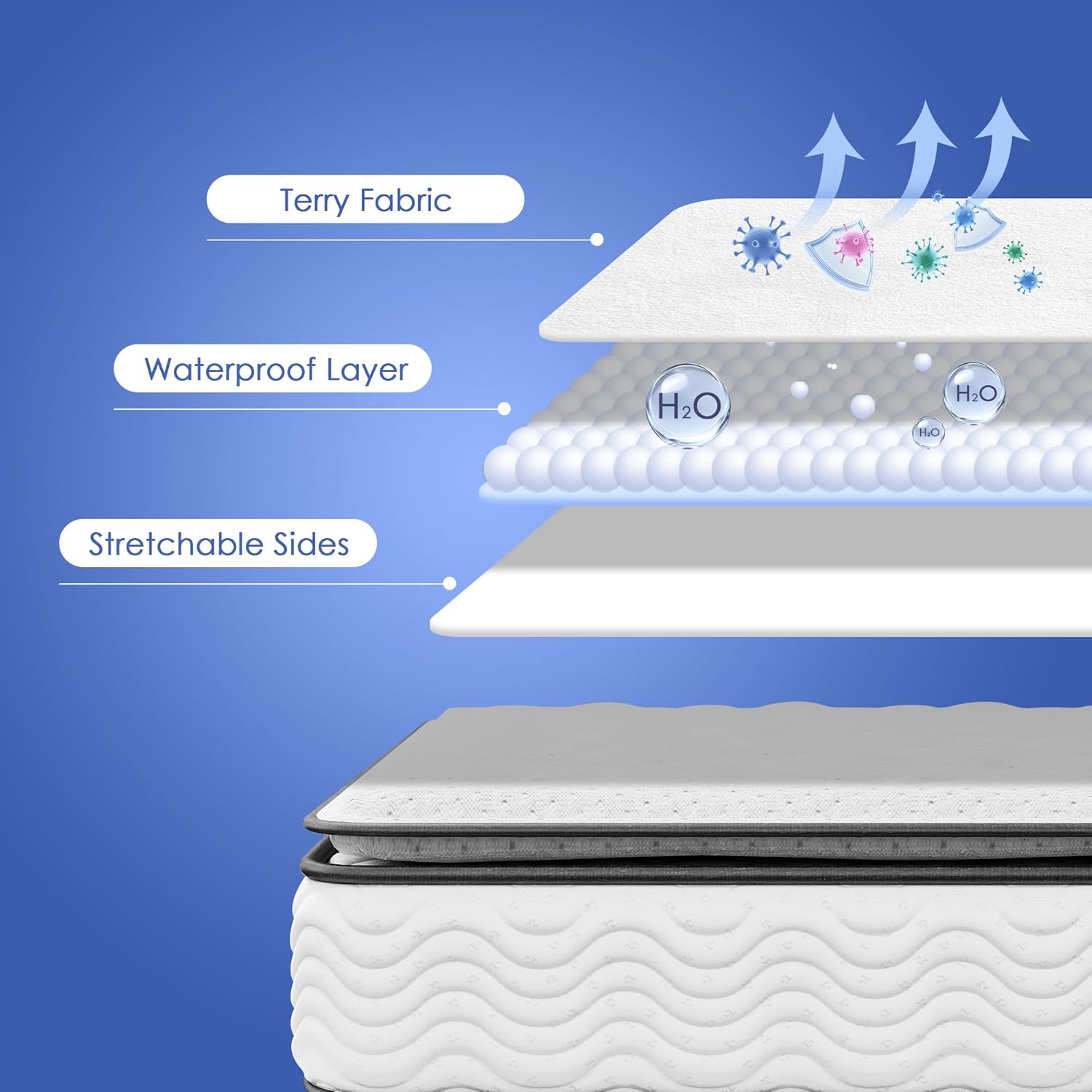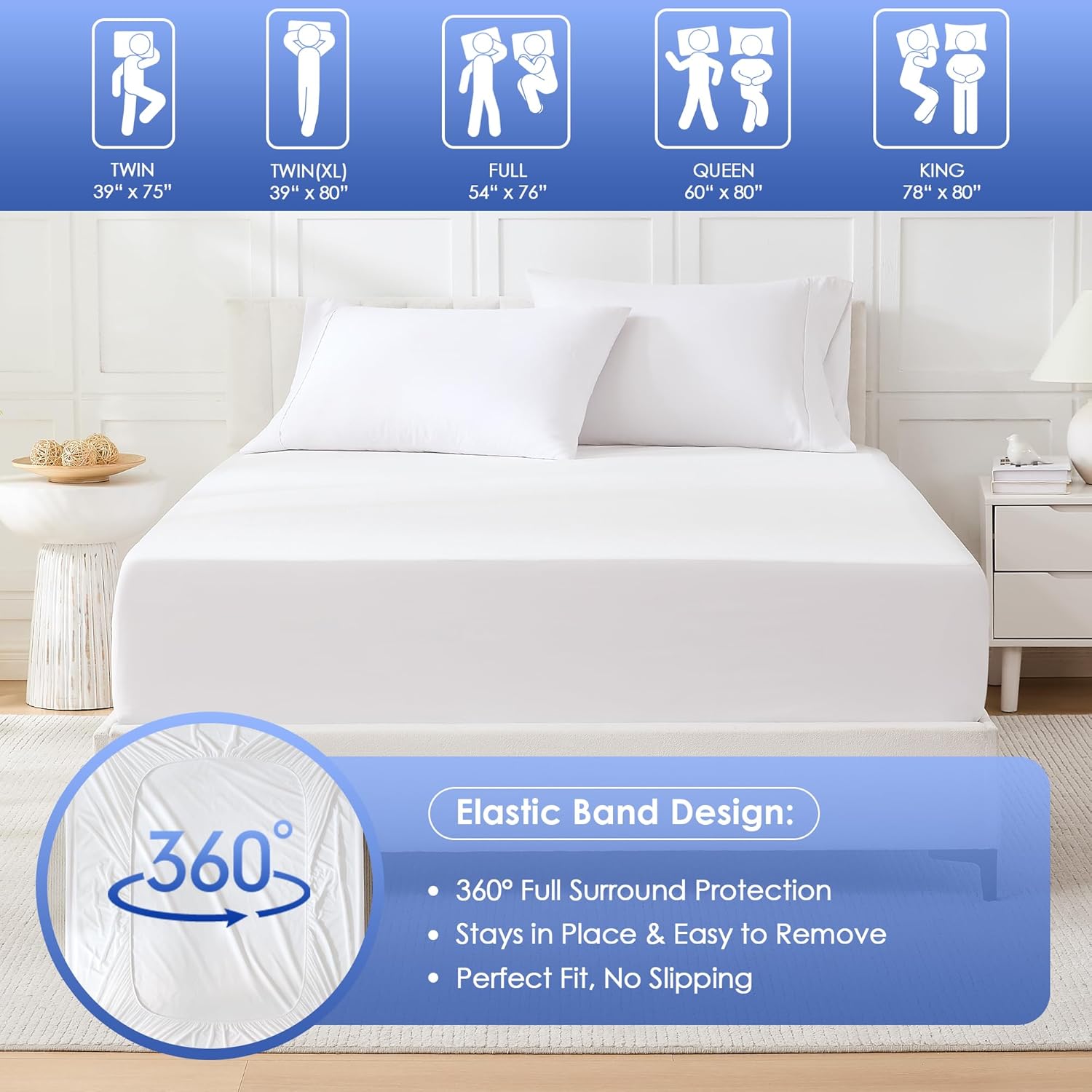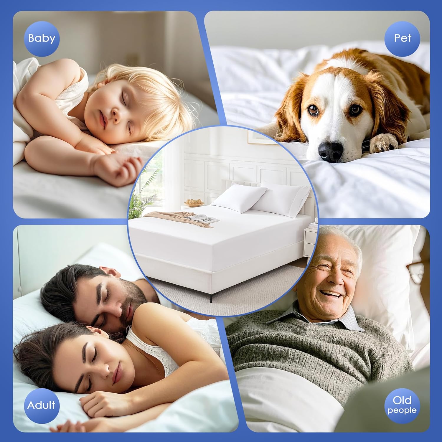 Keep your mattress safe and comfortable with this durable, waterproof solution thatâs perfect for families with kids or pets. The thick, soft fabric offers a cozy sleep surface, and its breathable design keeps your bedding fresh and cool throughout the night. This mattress protector features a 360° deep pocket design that fits snugly over your mattress, ensuring a secure and tailored fit. The soft, quiet TPU backing adds an extra layer of safety without disturbing your sleep. Plus, the stretchable skirt and elastic band create a tight seal, preventing any leaks or spills from reaching your mattress. Designed for ease of use, this protector is machine washable and retains its shape and quality after every cleaning. Itâs a practical choice for every stage of life, whether you're protecting your investment or creating a clean, healthy sleep space for your loved ones. Whether you're a parent, pet owner, or simply looking for a long-lasting mattress solution, this protector provides peace of mind with its dependable performance. The high-quality materials and thoughtful design ensure that your mattress stays protected and comfortable for years to come. With a perfect blend of style, function, and ease of care, itâs a must-have for any home.Experience Unmatched Comfort and Protection with HALANS King Waterproof Mattress Protector