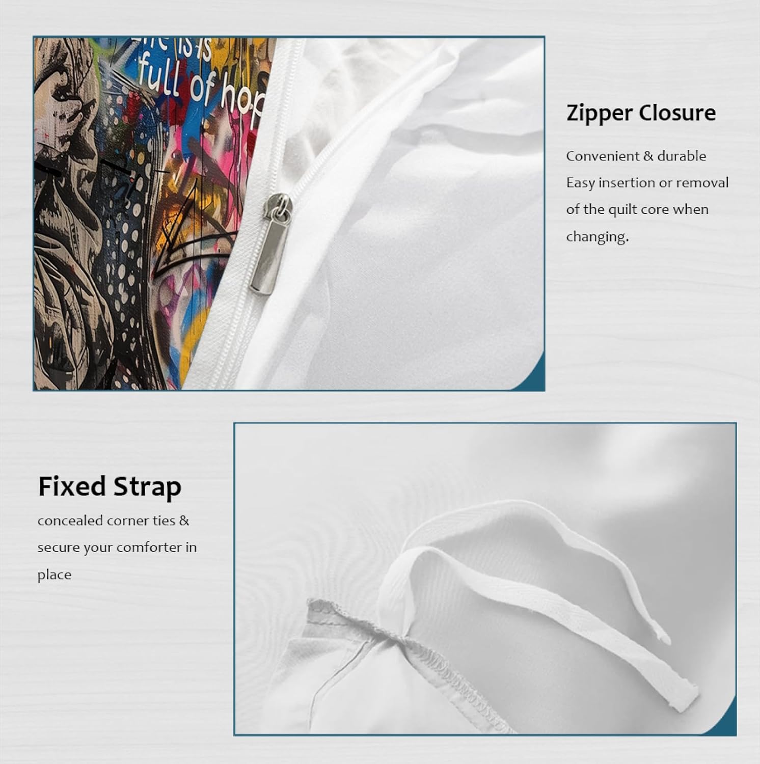 Featuring a hidden zipper closure, this set offers a seamless and secure fit, keeping your duvet in place without any hassle. The 4 corner ties provide extra stability, preventing the filling from shifting and ensuring your bedding stays neat and comfortable. The watercolor graffiti pattern brings a creative touch to your room decor, adding a unique and eye-catching style that stands out in any space.