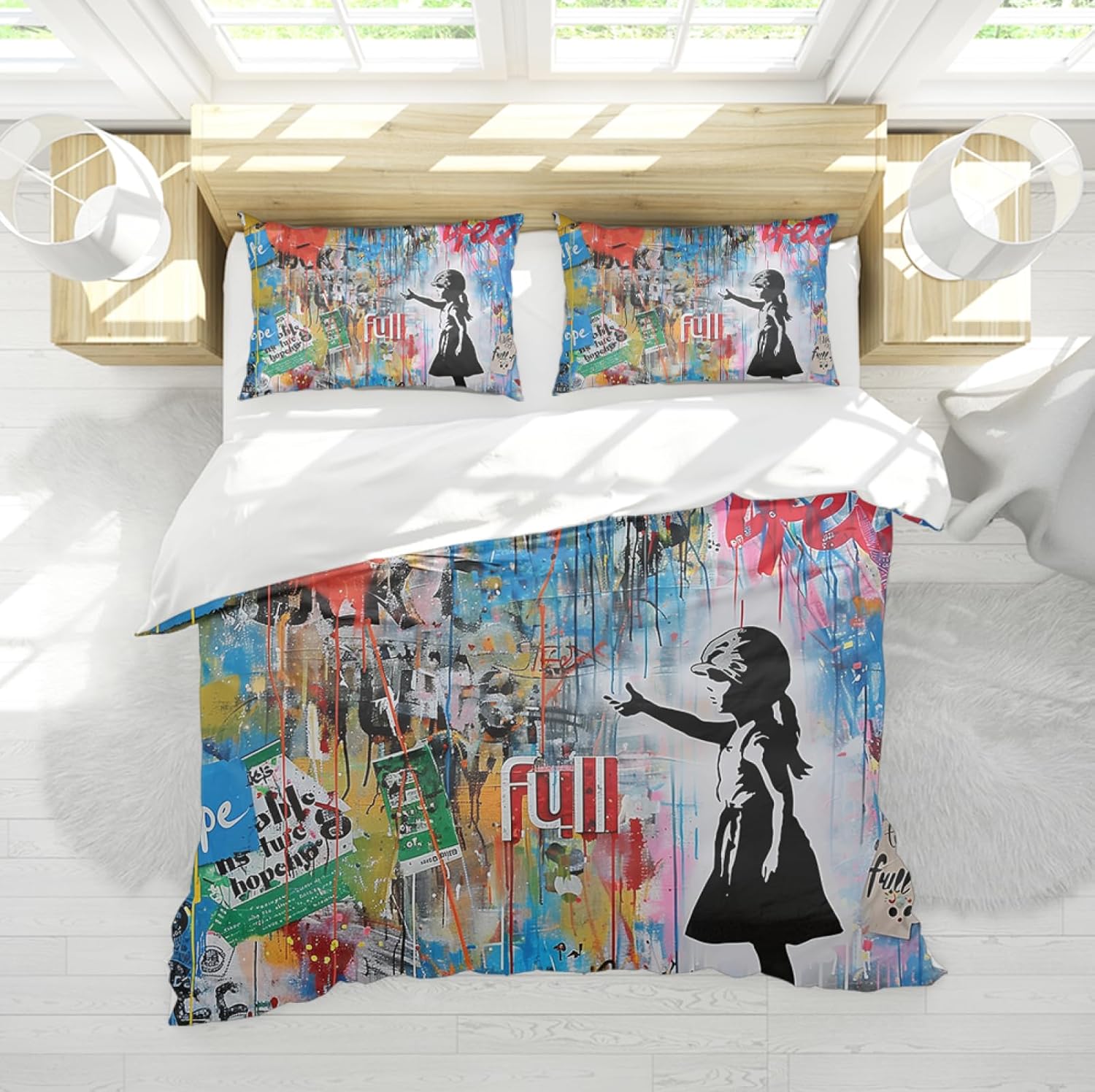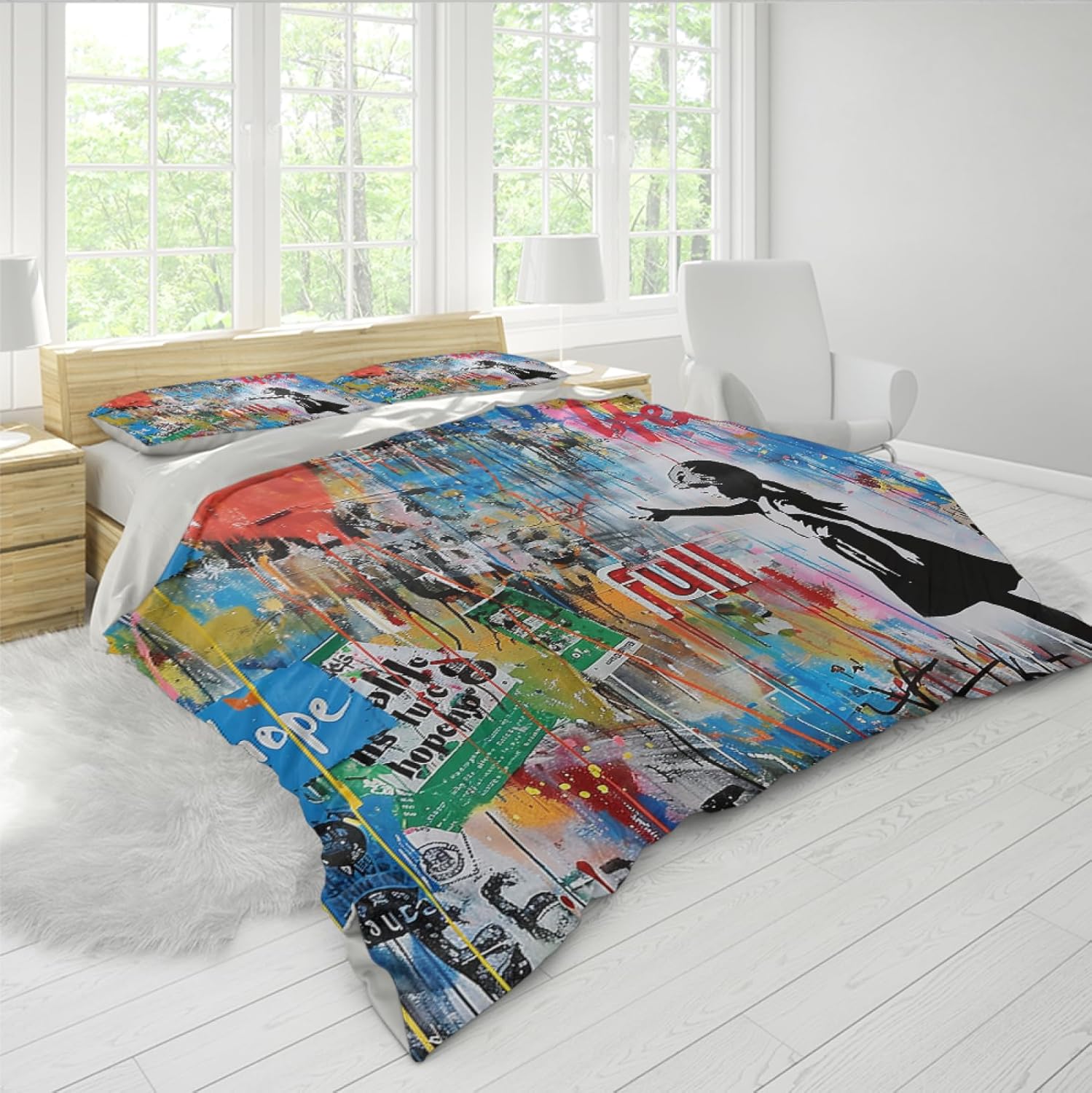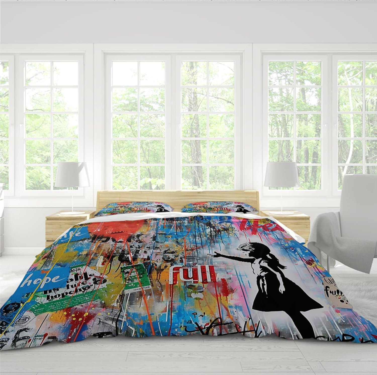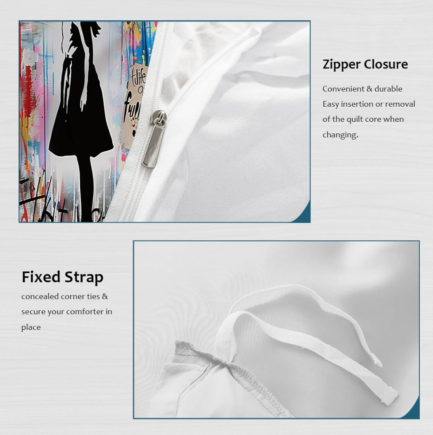 This HOBBOY duvet cover set is a dreamy addition to any kidsâ bedroom. Made from premium microfiber, it offers unmatched softness and comfort, enveloping your little one in a gentle embrace that feels like a warm hug. The hidden zipper design ensures easy and secure closure, while the 4 corner ties keep the comforter in place for safety and peace of mind. The breathable and lightweight fabric makes it perfect for all seasons, giving your child a cozy sleep experience no matter the weather. With its stylish modern design, this set adds a touch of elegance and fun, making it ideal for creative kids who love bold and unique looks.