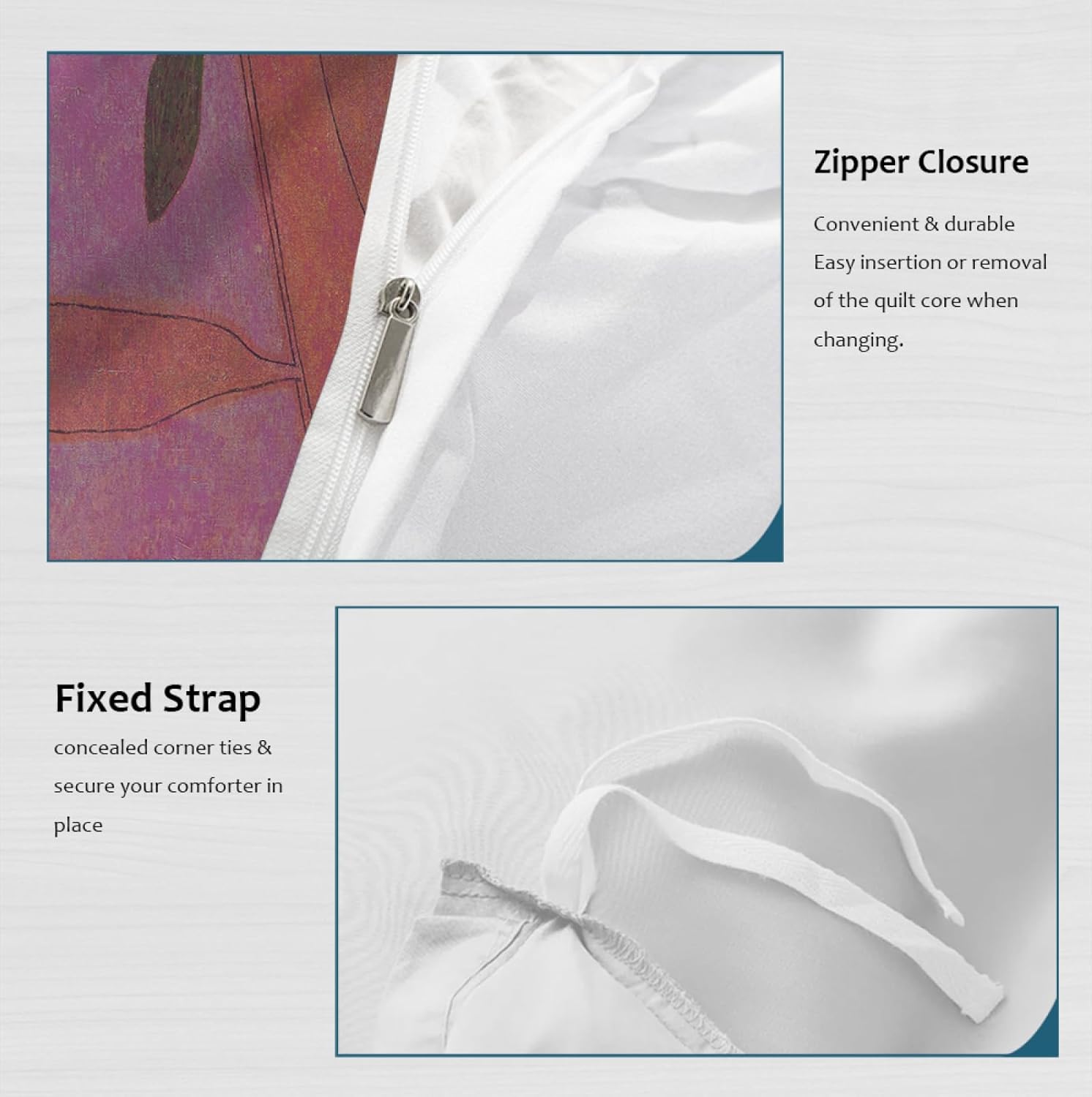 This premium duvet cover set adds a touch of artistic charm and cozy comfort to your bedroom. The soft microfiber fabric feels gentle on your skin, yet it remains lightweight and breathable, making it ideal for year-round use in any room.