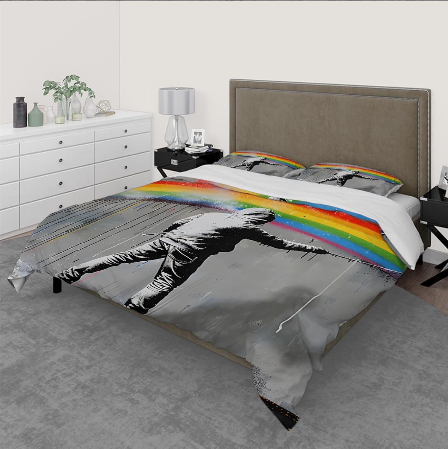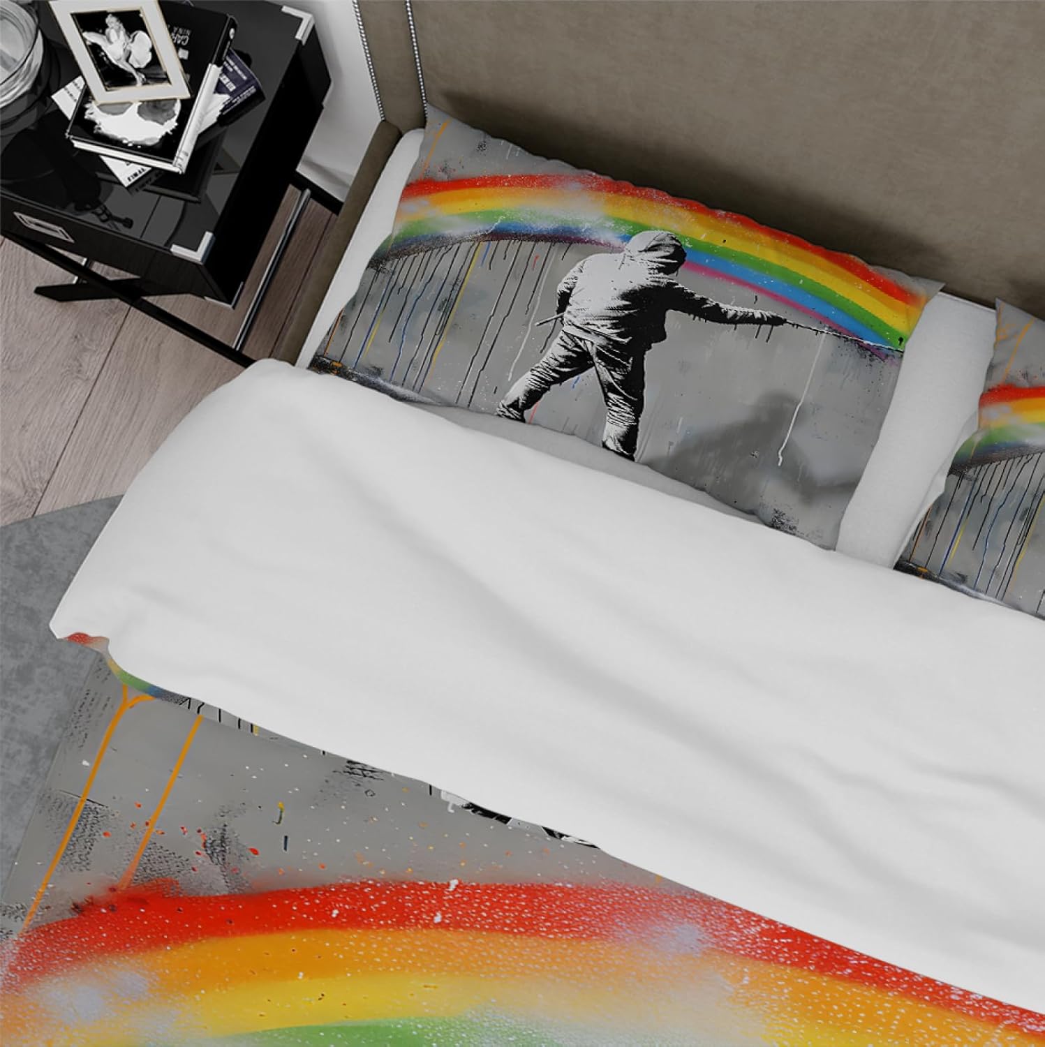 This HOBBOY Graffiti Kids Duvet Cover Set brings a splash of creativity and vibrant style to any child's bedroom. The eye-catching rainbow print adds a playful, lively vibe that's sure to impress. Designed to make a bold statement, the set blends effortlessly with your existing decor, offering both modern flair and enduring charm.