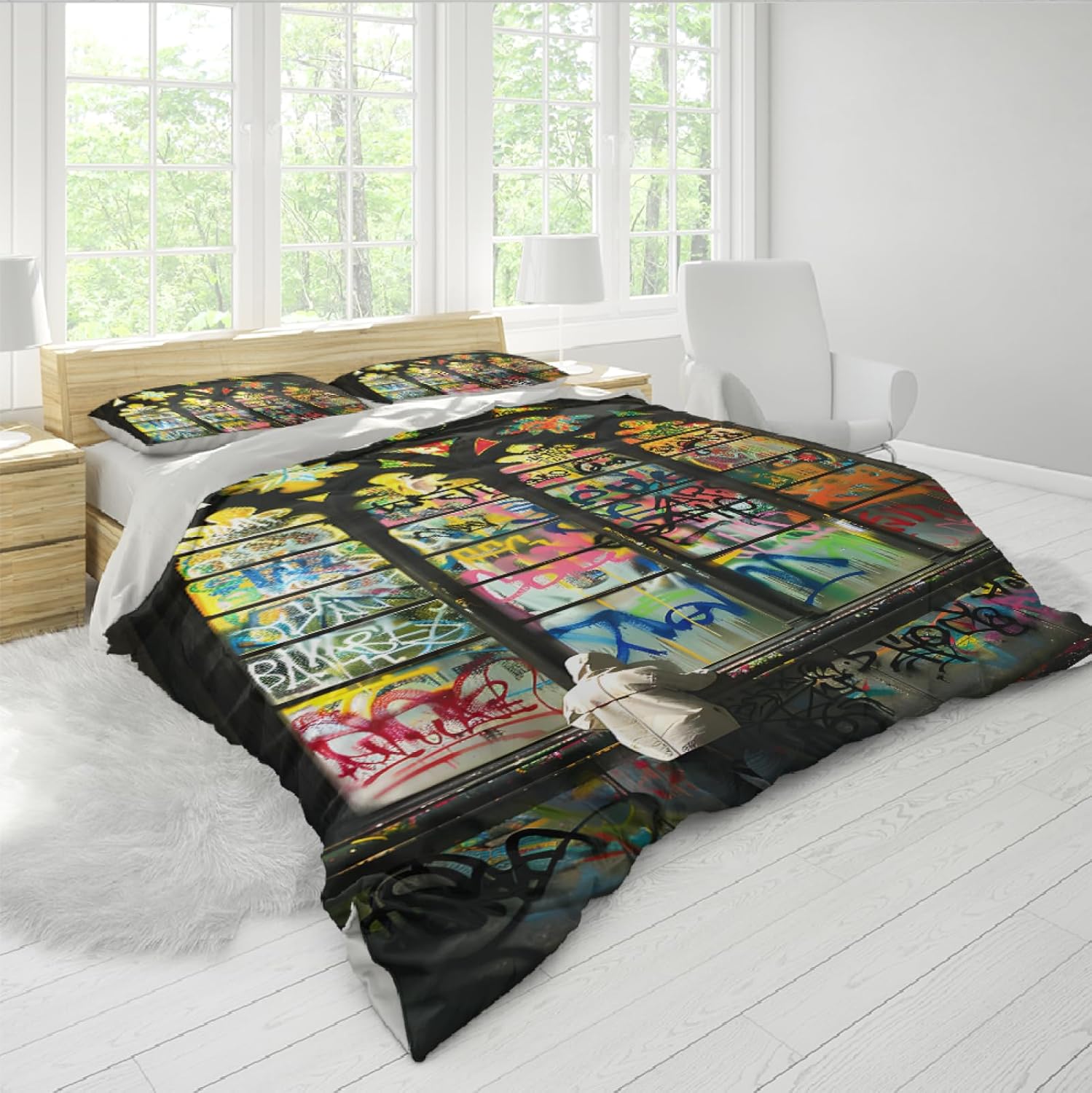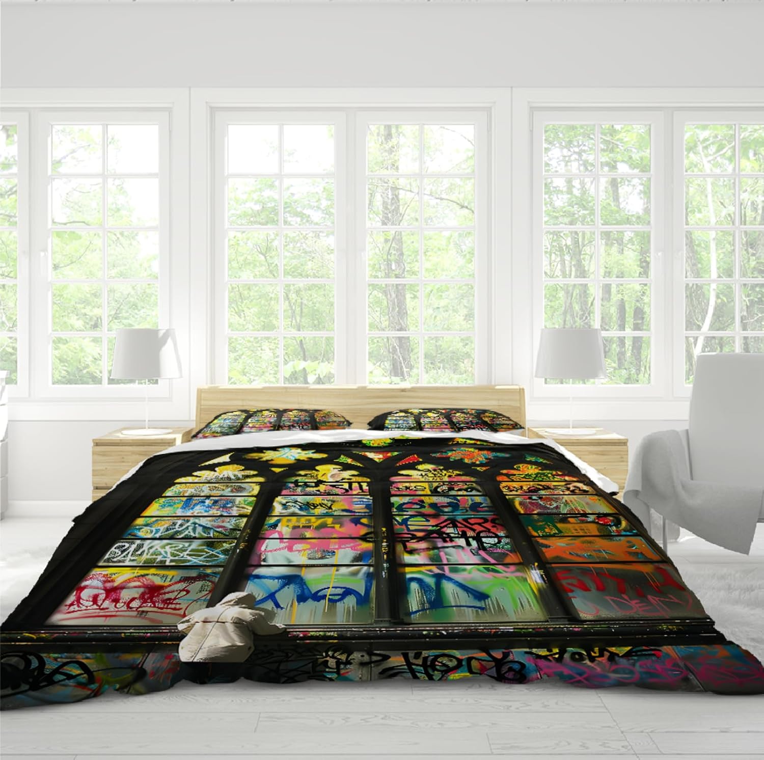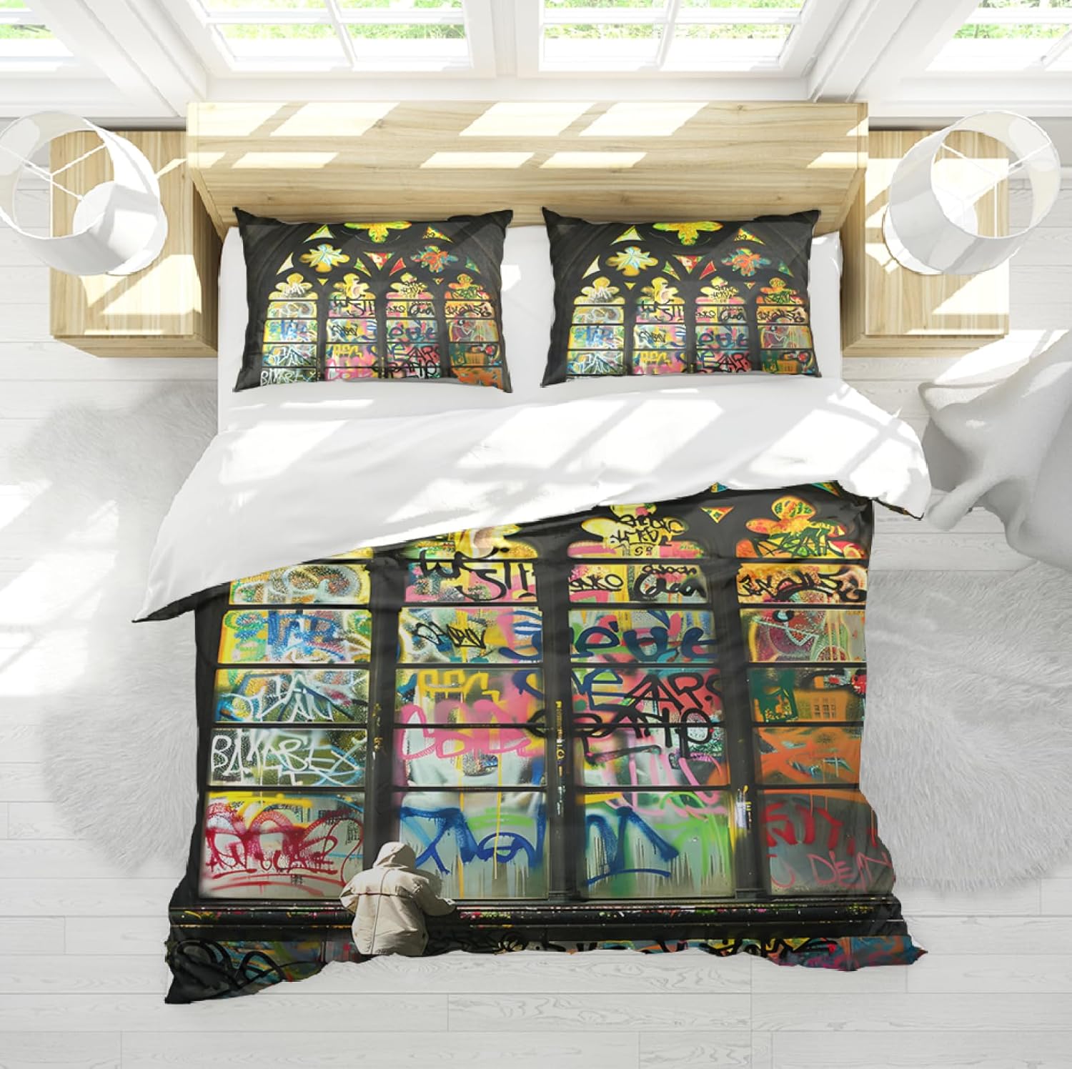Transform your childâs bedroom with this effortlessly stylish and comfortable 3-piece duvet cover set. Infused with a unique hippie graffiti stained glass pattern, it brings a modern, artistic flair to any space, whether itâs a cozy kidsâ room or a trendy guest space.