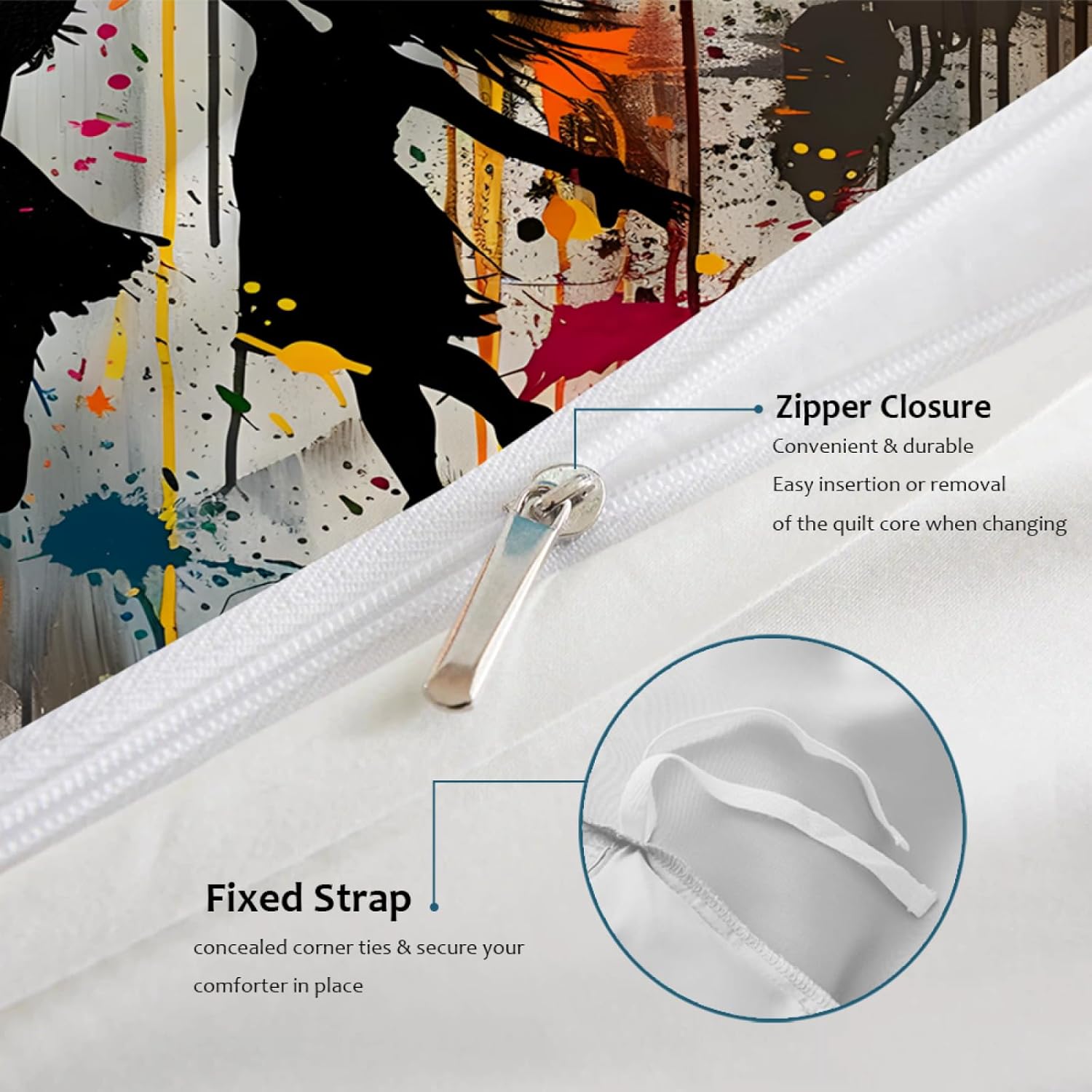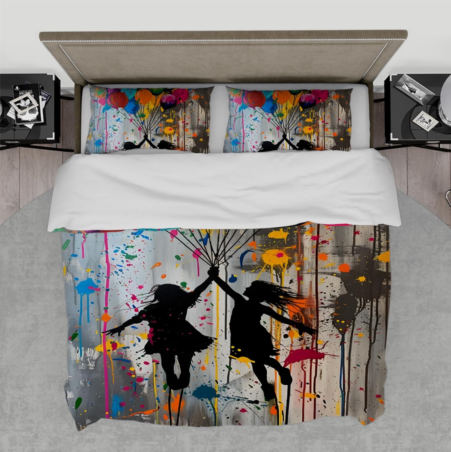 This playful bedding set is ideal for boys and girls, featuring a vibrant graffiti design that can effortlessly complement any themeâwhether it's a birthday, Halloween, or Christmas. The set includes one duvet cover and two matching pillowcases, making it the perfect fit for a twin XL bed. Designed to last, it resists fading and retains its softness even after multiple washes, ensuring long-term value and satisfaction.