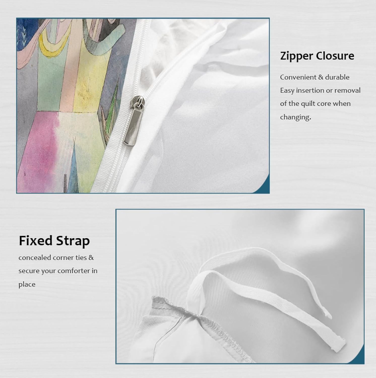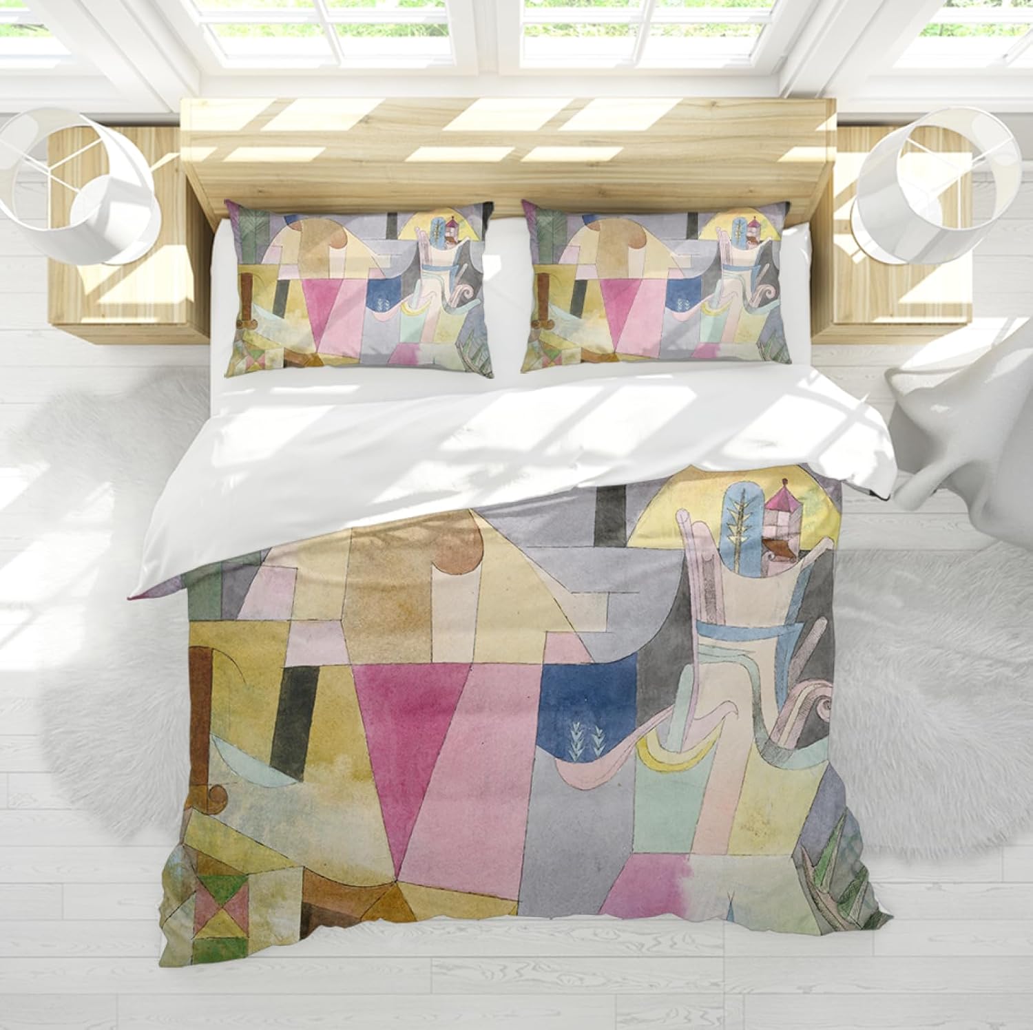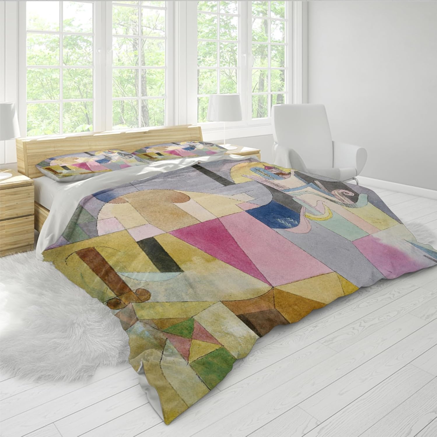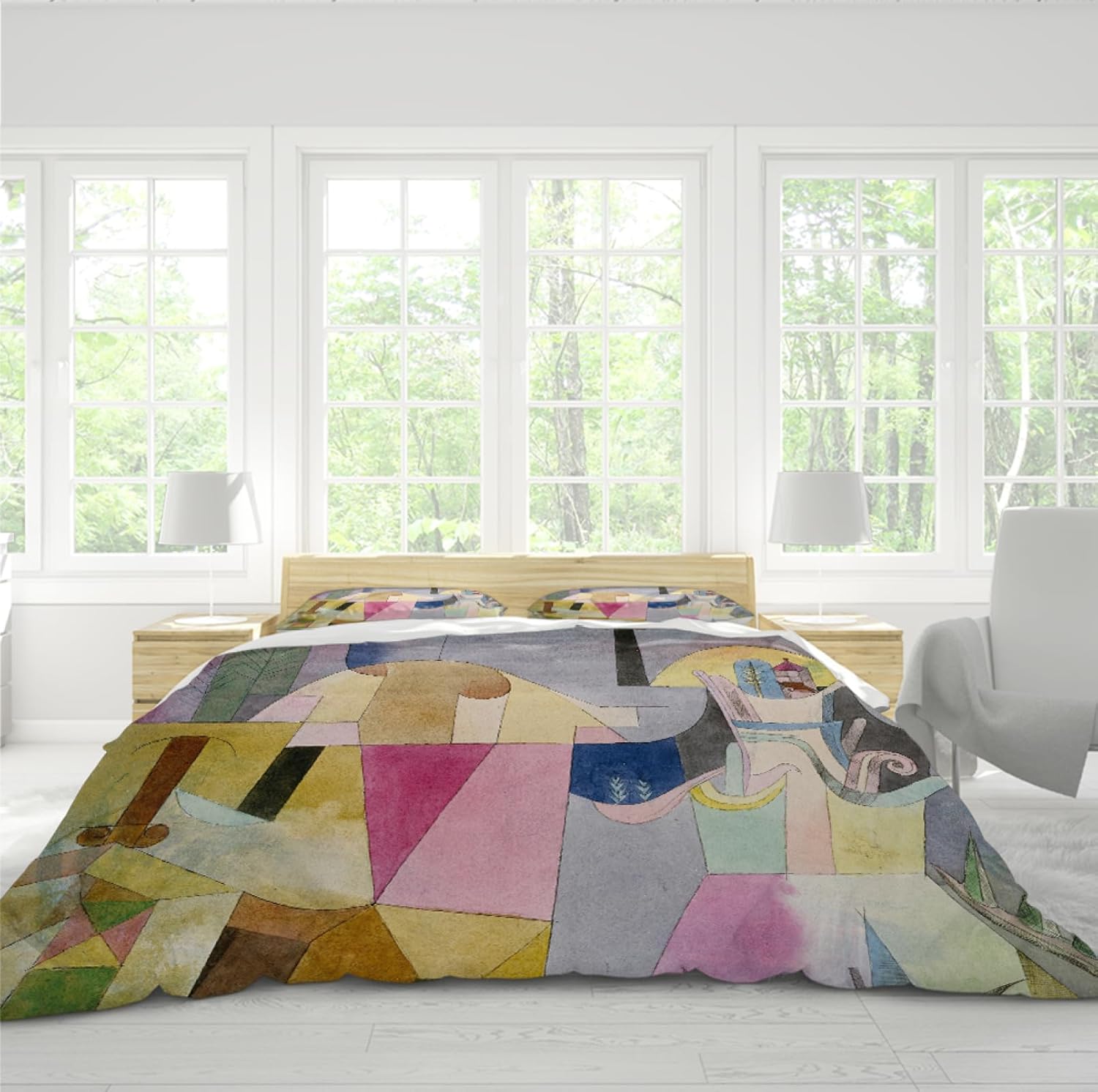 Inspired by the iconic works of Paul Klee, this HOBBOY duvet cover set brings a touch of artistic beauty and modern flair to your living space. Designed for both style and comfort, it features premium microfiber fabric thatâs ultra-soft, lightweight, and breathable, making it ideal for every sleep surface. The set includes a duvet cover and two matching pillowcases, creating a seamless and elegant look that blends perfectly with your bedroom decor.