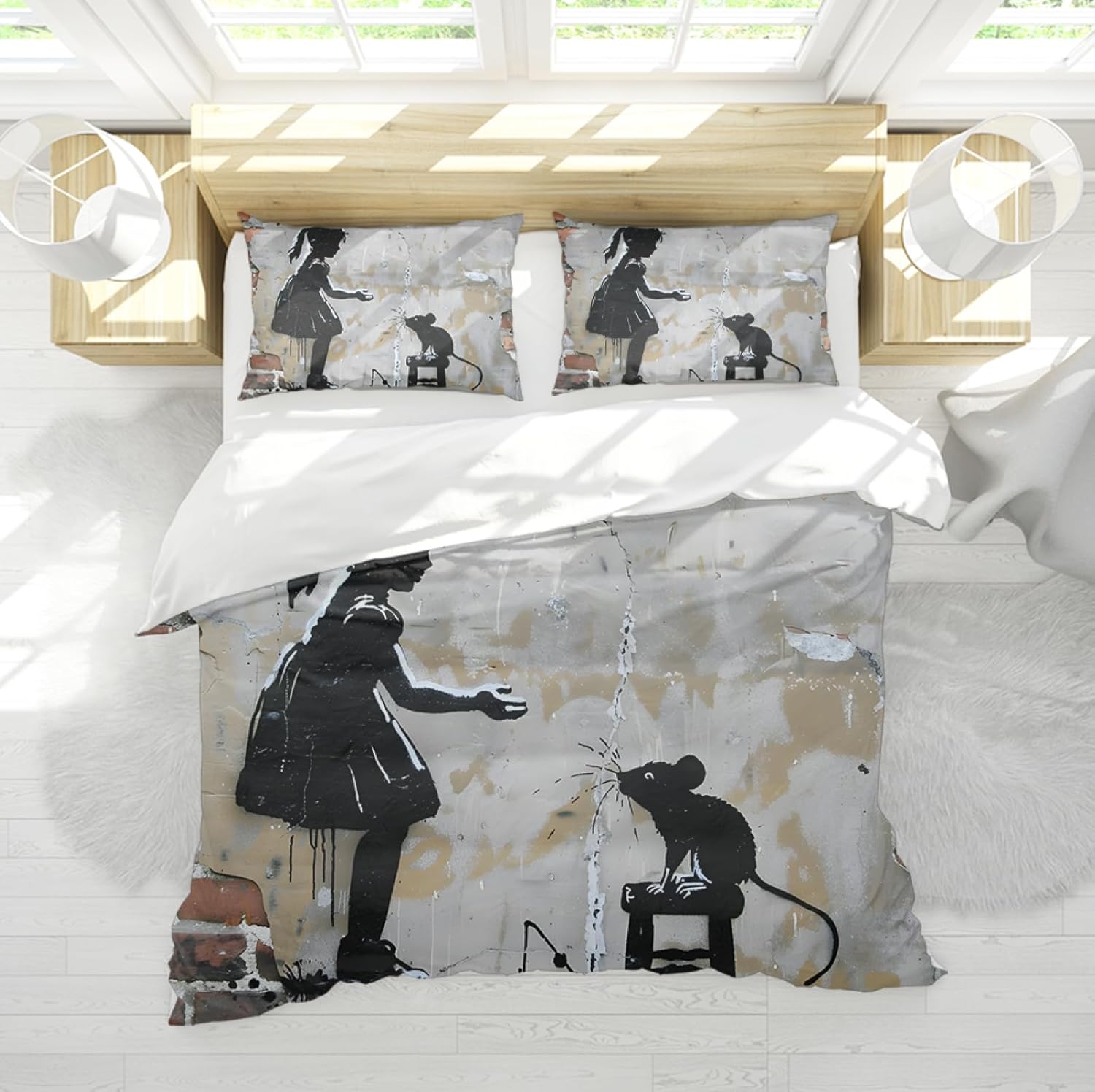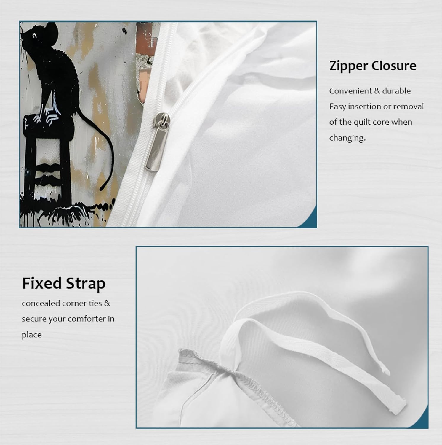 Featuring a hidden zipper for easy installation and a secure fit, this set ensures your child stays cozy all night long. The 4 corner ties are built to keep the filling in place, providing an extra layer of comfort without compromising on durability. The graffiti art pattern is a bold and expressive choice, bringing a playful and vibrant energy to any bedroom decor.