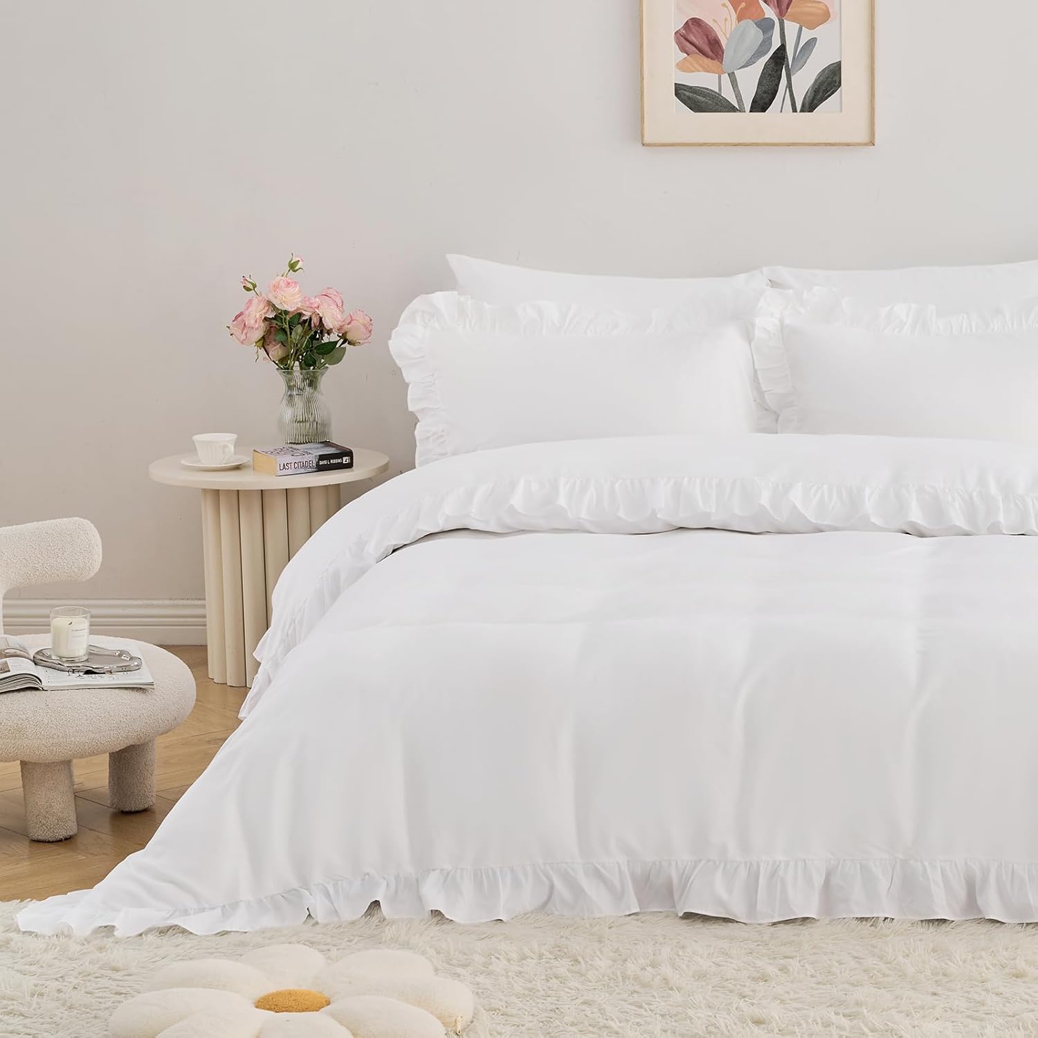 With its beautiful white ruffle design, this set is perfect for those looking for a soft microfiber duvet cover. The vintage French Country interior style ensures your bedding remains elegant for years to come. Duvet cover with zipper closure makes it easy to use, while the quality ensures it lasts through countless washes and wears.