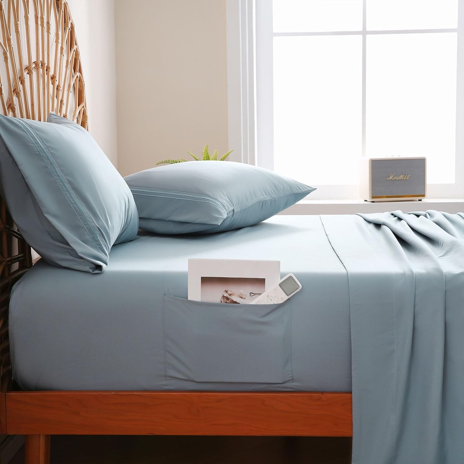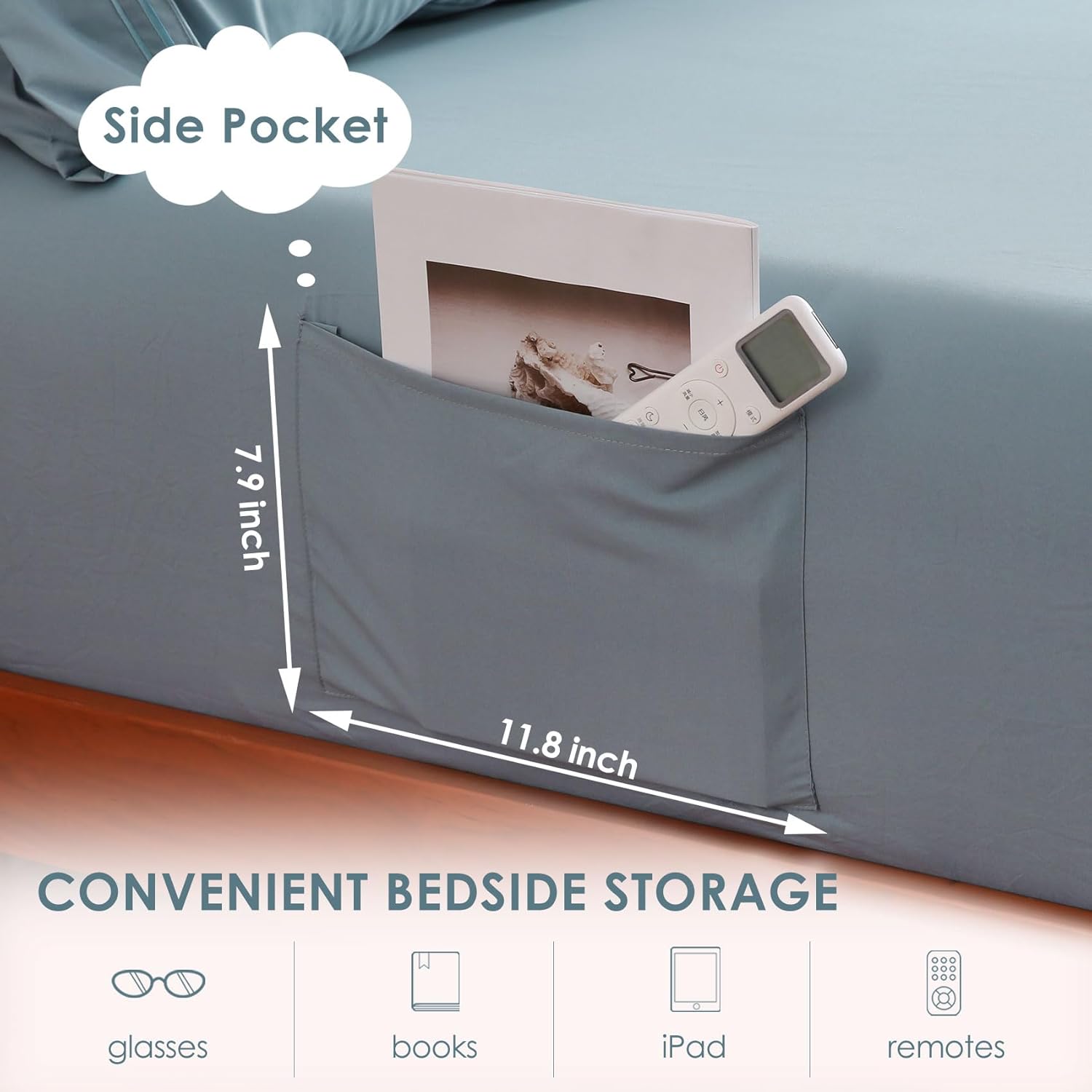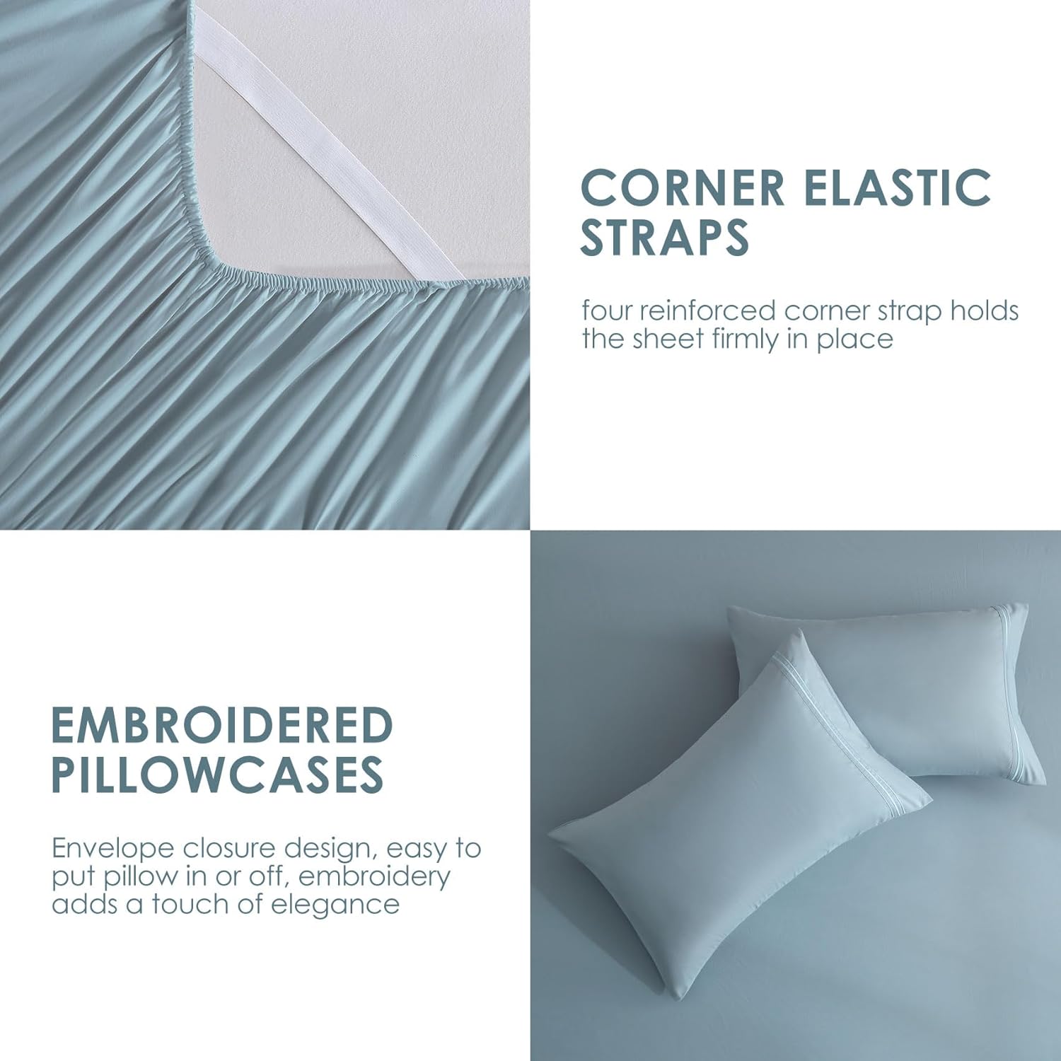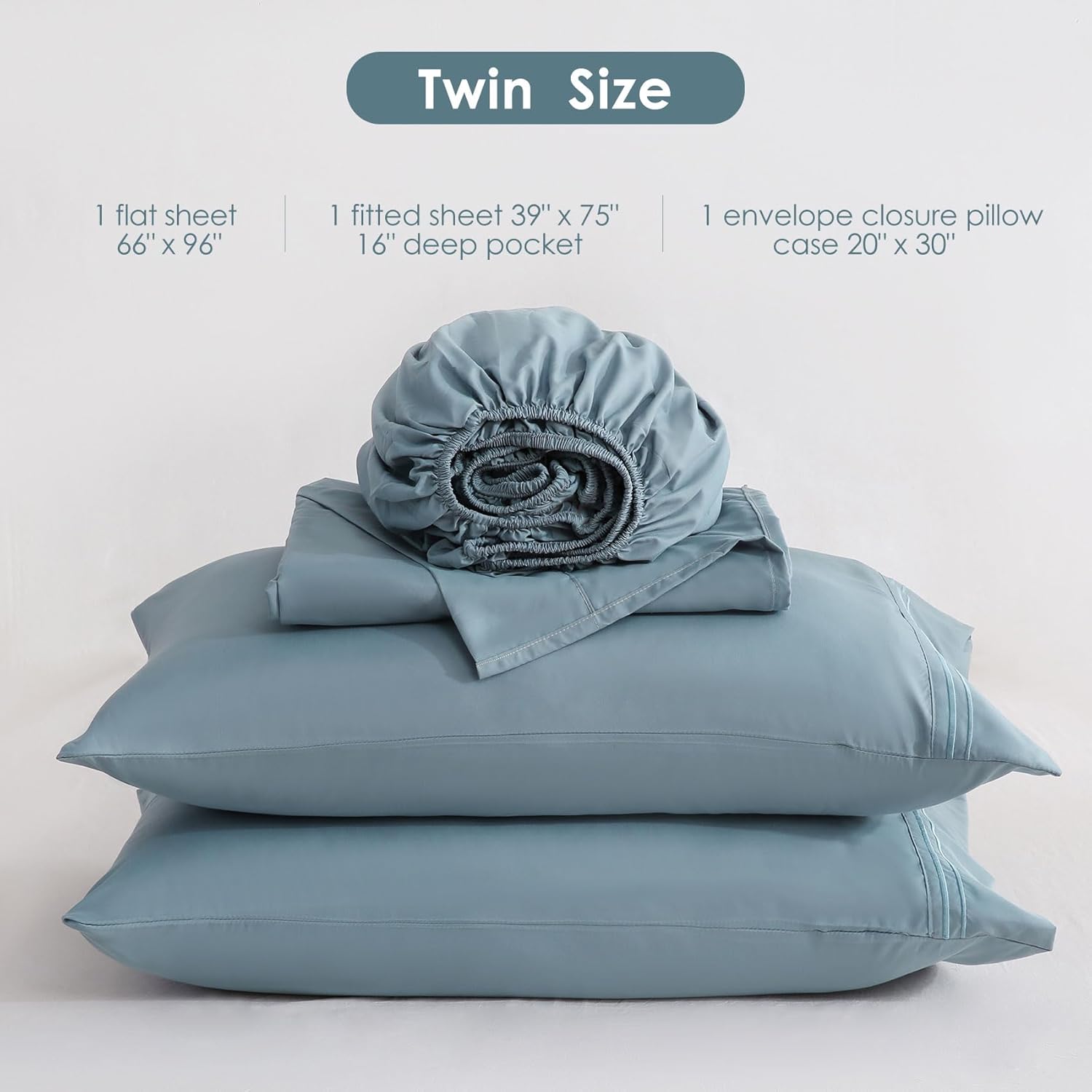 Create a restful and organized sleep environment for your child with this JSD Blue Twin Sheet Set. Designed for comfort and practicality, this 3-piece set includes a flat sheet, a fitted sheet with 16" deep pocket, and an envelope closure pillowcase. Its soft brushed microfiber fabric ensures a smooth, gentle touch that keeps your little one cozy through the night. Whether you're looking for comfort, durability, or a touch of style, this sheet set is the perfect solution for kidsâ bedding. Its fresh blue color adds a cheerful element to any child's bedroom, while the wrinkle-resistant and non-pilling fabric ensures it stays looking new even after frequent use. Transform bedtime into a smooth and delightful routine with the JSD Blue Twin Sheet Set. Combining practical features with a sleek design, this set is ideal for parents who value convenience without compromising on quality. With cold wash and tumble dry care, it's easy to keep clean and maintains its softness and shape through the seasons. Shop now and bring a touch of comfort and style to your childâs room with this durable and reliable twin sheet set.JSD Blue Twin Sheet Set â Cozy & Functional Kids Bedding