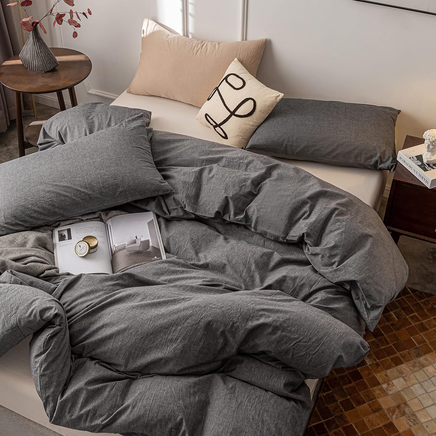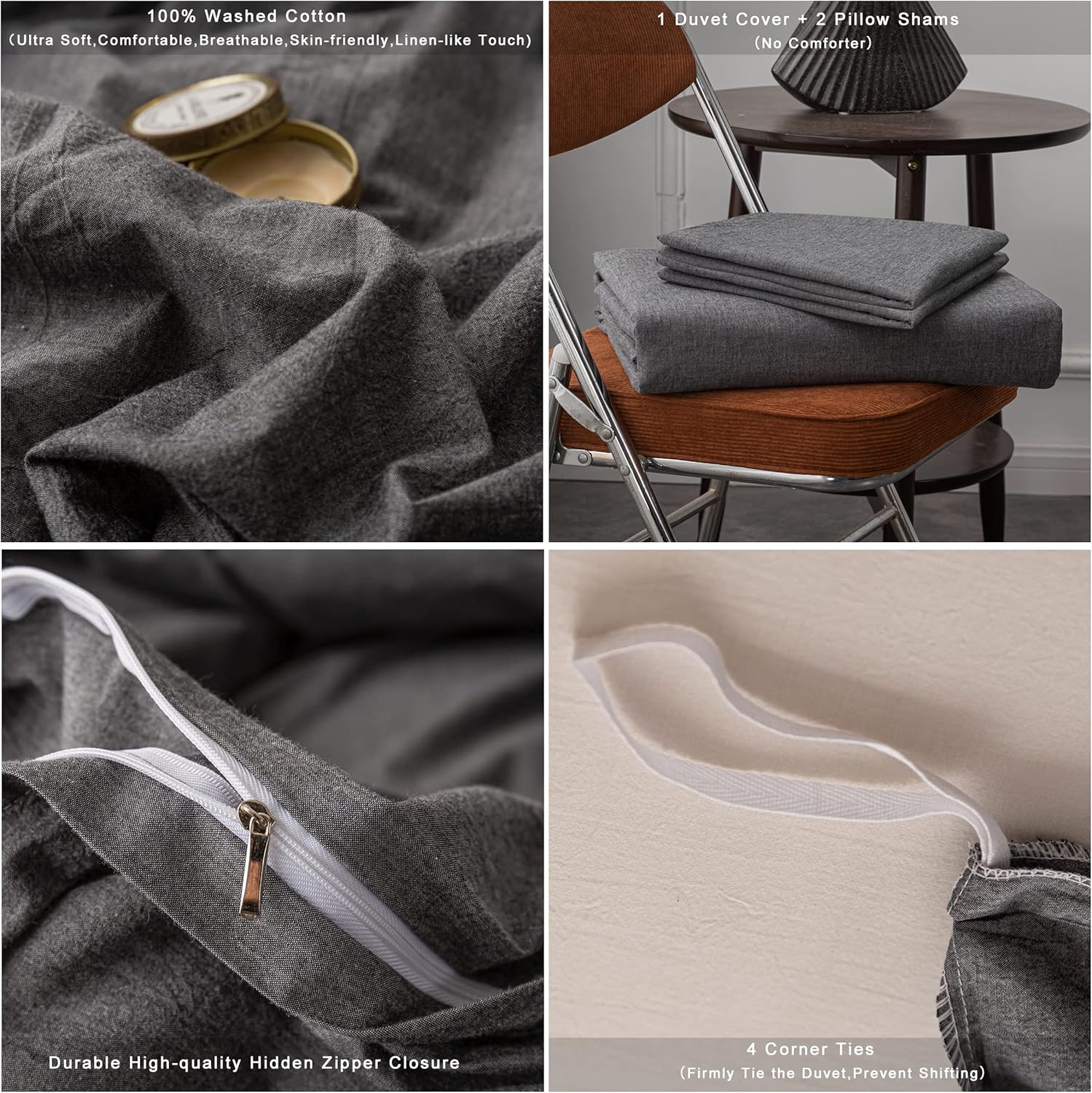 Keywords: washed cotton duvet cover, 100% cotton duvet set, gray duvet cover full, zipper closure bedding set, soft and breathable duvet cover