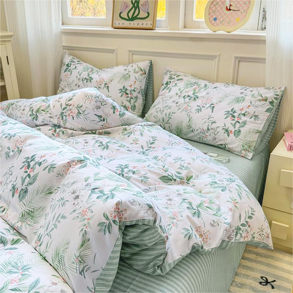 This Joluserie Green Floral Queen Duvet Cover Set is made from 100% cotton, offering a soft and breathable feel that's gentle on your skin. Designed for comfort, itâs the perfect addition to your bedroom for a restful night's sleep. The reversible design allows you to switch between a delicate floral pattern and a sleek green striped option, giving your space two beautiful looks with one purchase. Ideal for kids rooms, this set adds a touch of style to bedtime with its charming and elegant design. Whether youâre looking to refresh your decor or give a unique gift, this duvet cover set is a great choice for birthdays, Valentineâs Day, Anniversaries, Thanksgiving, or Christmas. Itâs easy to care for, as it can be washed in cold water on a gentle cycle and dried with low heat, making it a practical and durable addition to your bedding collection. More than just a bedding accessory, this duvet cover brings a fresh and modern aesthetic to your bedroom. Whether you're looking to create a cozy retreat or add a new element of style, the Joluserie Green Floral Queen Duvet Cover Set is designed to enhance your living space while offering exceptional comfort and durability. With its elegant design and child-friendly appeal, it's a must-have for any home seeking a blend of style and practicality.Joluserie Green Floral Queen Duvet Cover Set
