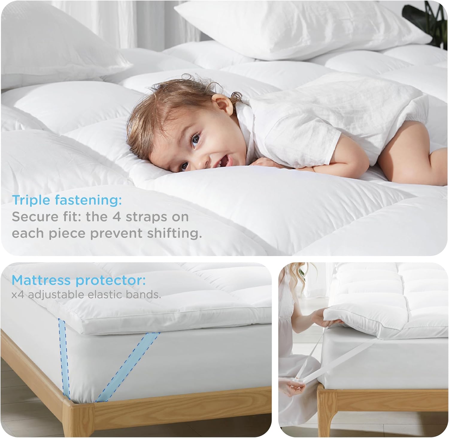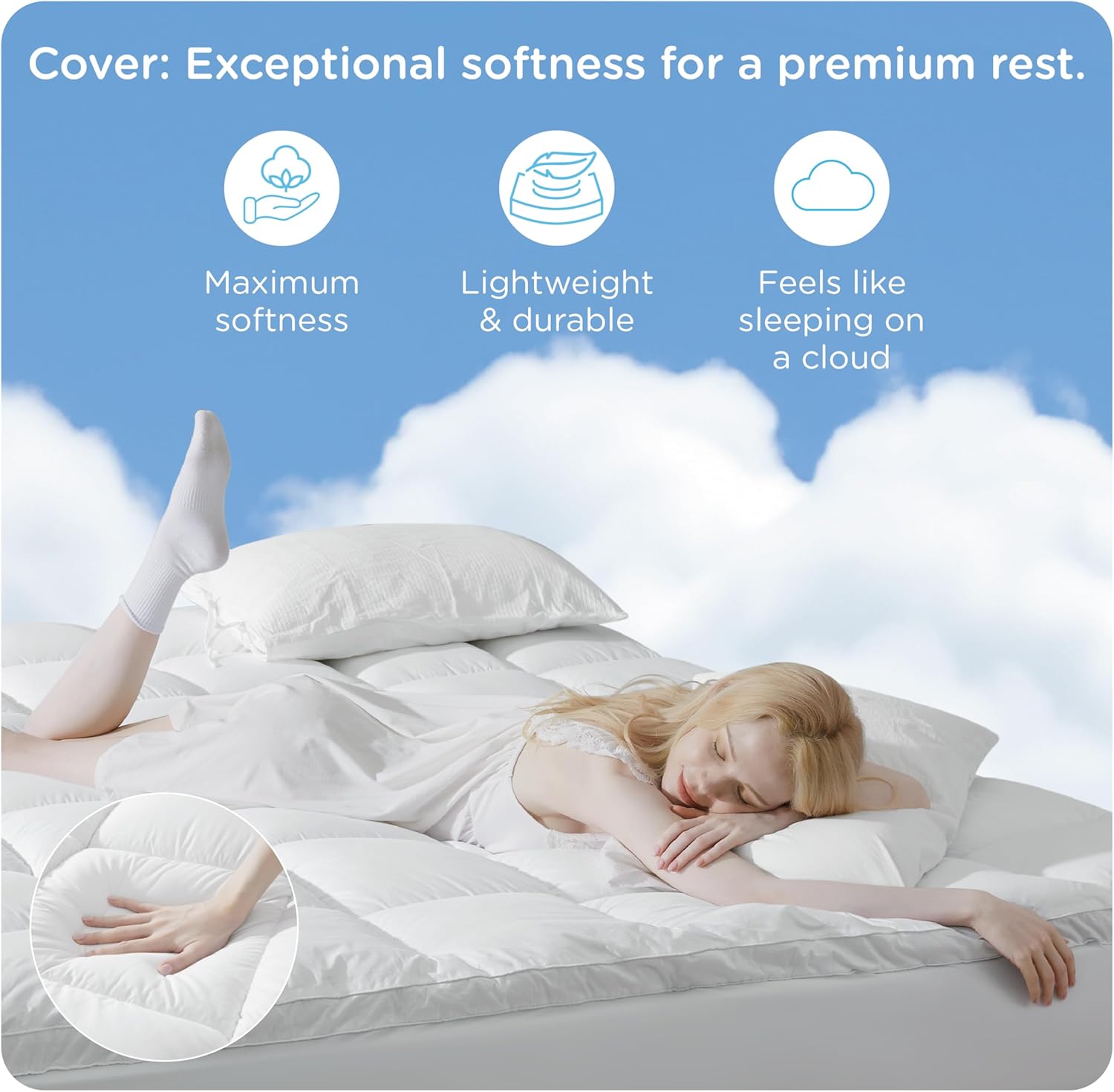 Transform your sleep into a dream with the KUB Mattress Topper & Protector Combo. Built with a 3D snow down alternative fill, it combines the softness of down with the durability and hypoallergenic benefits of synthetic materials. This top-tier design delivers exceptional support ideal for people suffering from back pain, while the breathable fabric keeps you cool in summer heat and cozy throughout colder months.