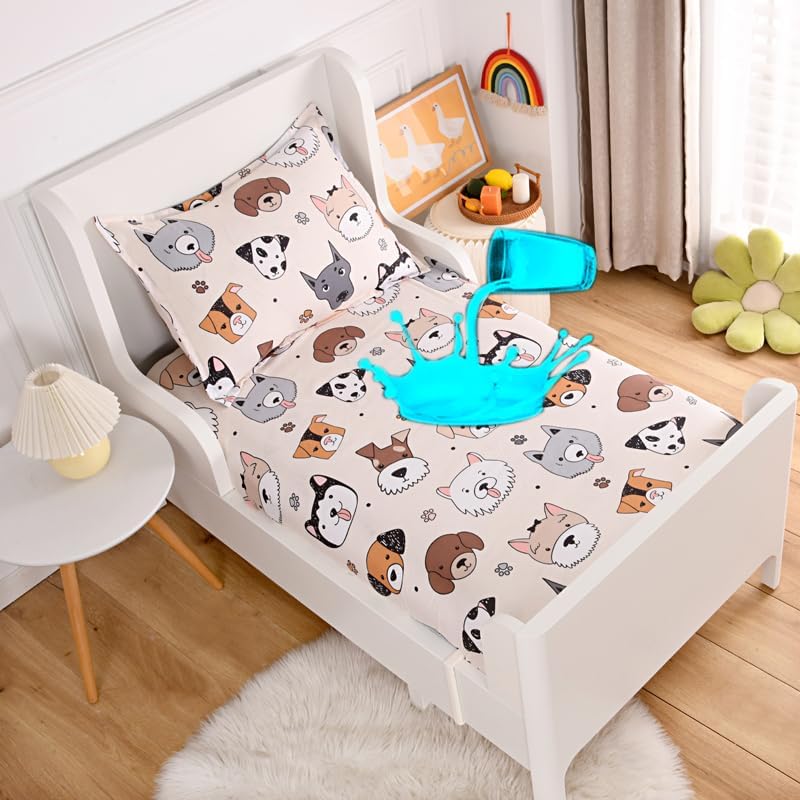 Upgrade your childâs room with this cute doggy printed bed sheet set. It combines a modern aesthetic with practicality, making it a great choice for any family with children. The waterproof TPU mattress protector is a must-have for parents looking to maintain a clean, safe, and comfortable sleep environment for their kids.