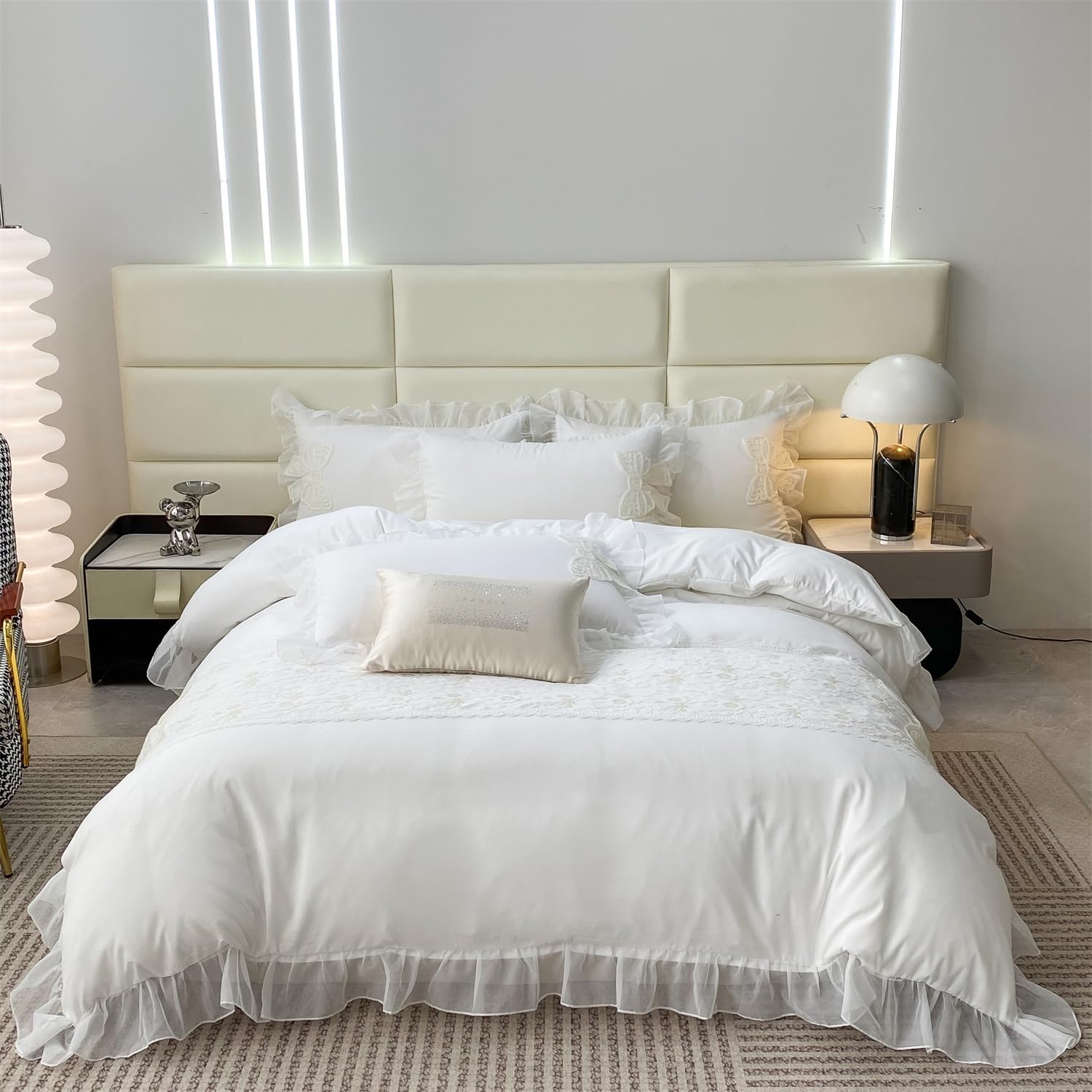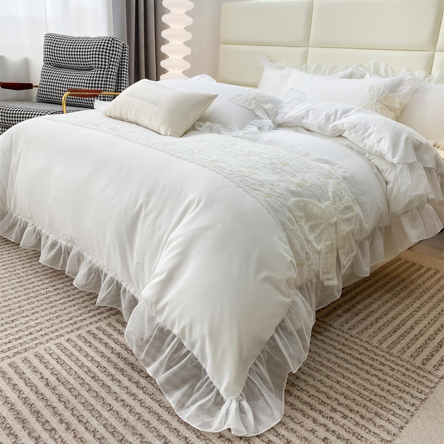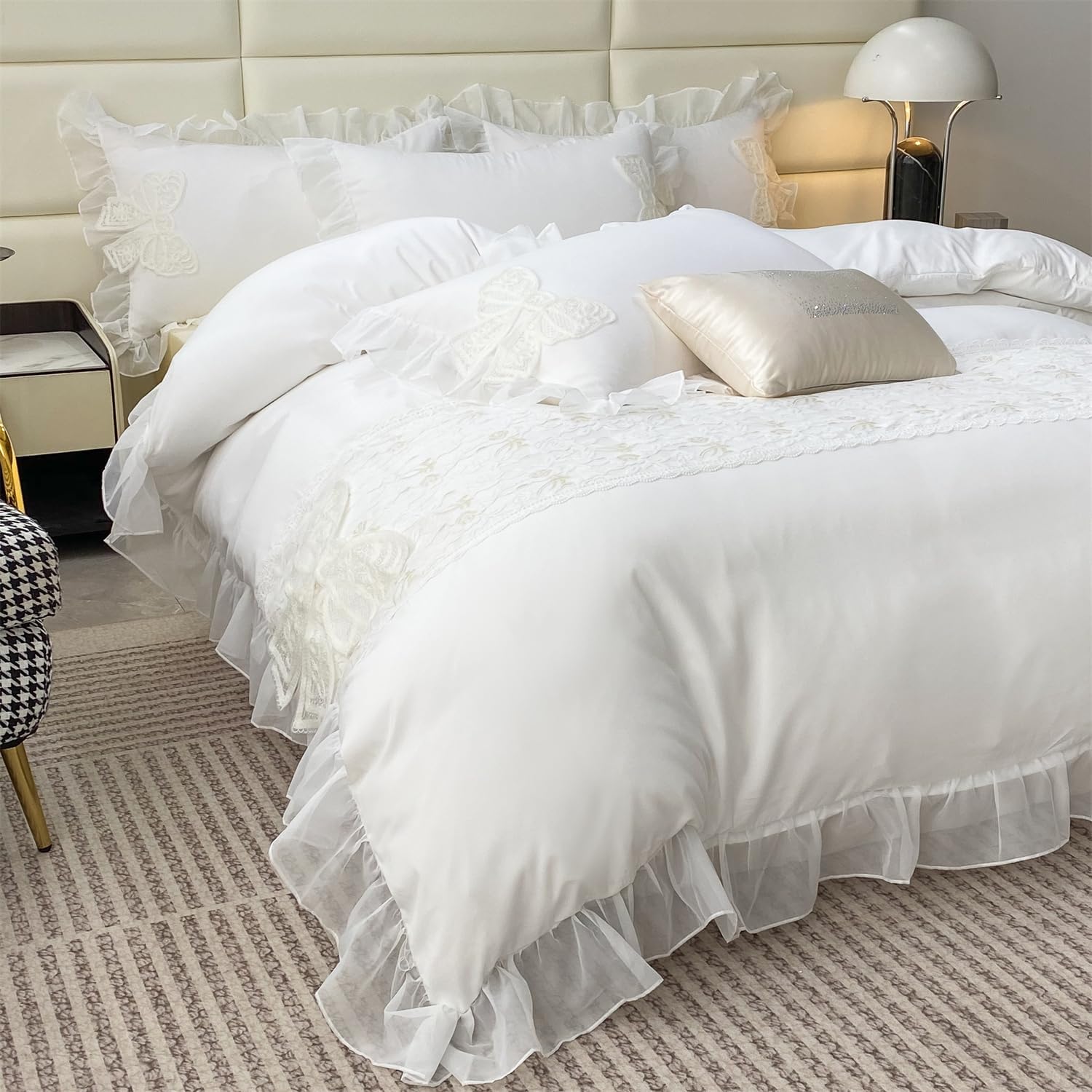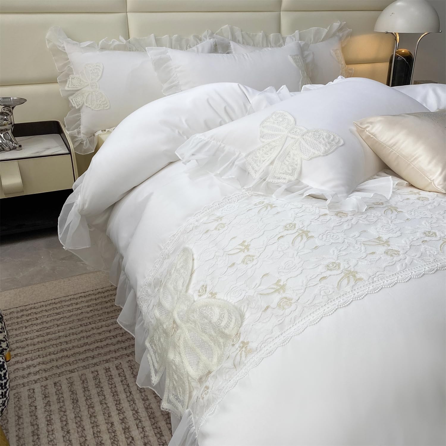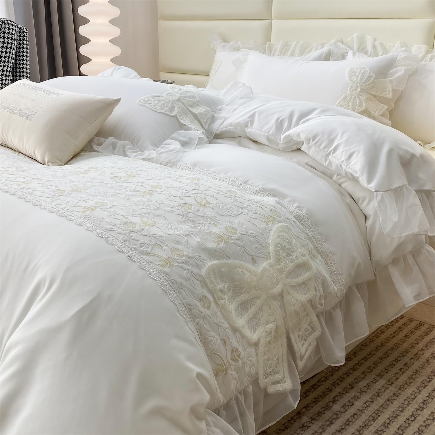 Add a soft, stylish, and feminine feel to your bedroom with the MOOWOO Duvet Cover Set. This beautiful set features a charming bow and ruffle lace design that brings a touch of elegance and charm to any room. Ideal for girls, teens, or women, it's a perfect complement to both modern and shabby chic decor.