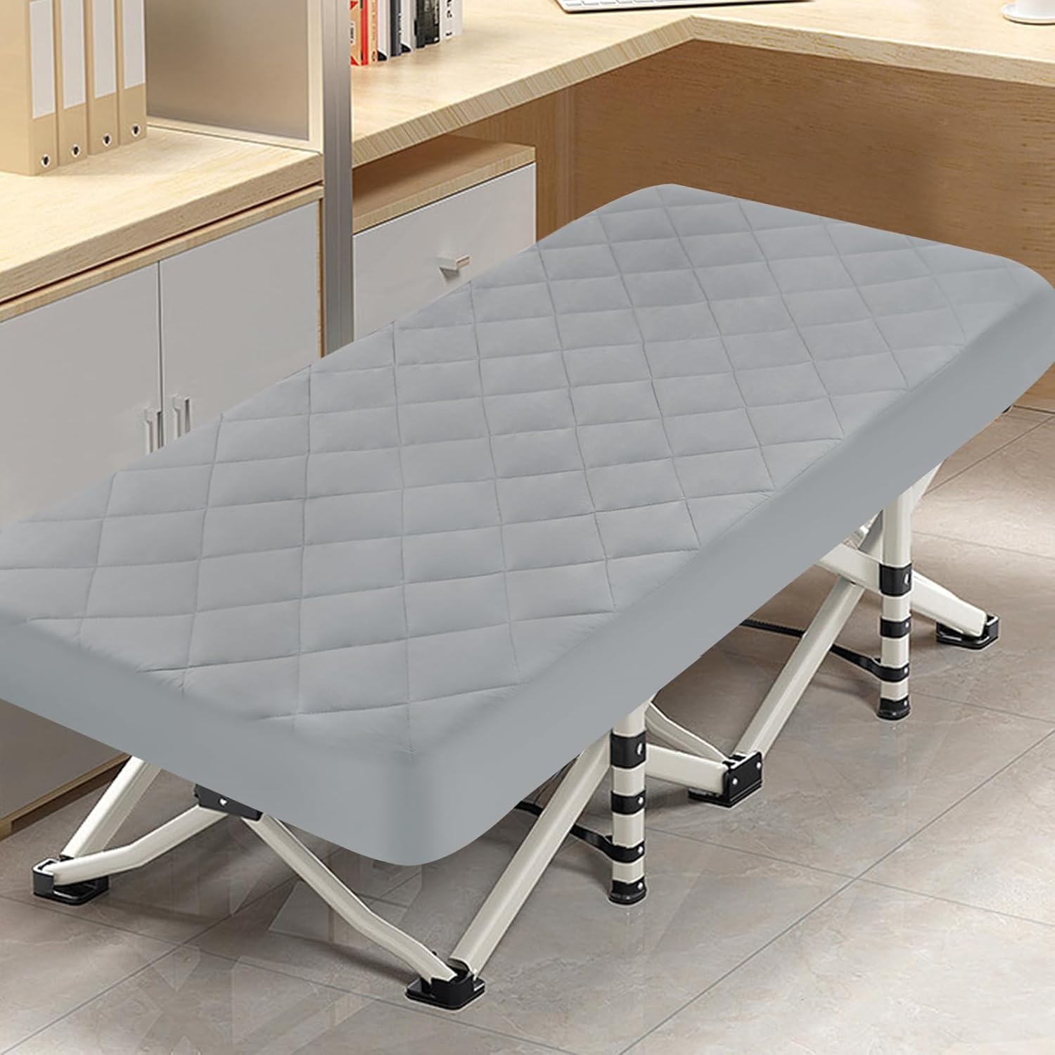 This premium cot mattress pad combines a durable TPU waterproof layer with a quilted design to offer unmatched support and a cozy feel. It's the perfect choice for anyone looking for a safe, hygienic, and comfortable sleep solution, whether you're camping, traveling, or using it at home.